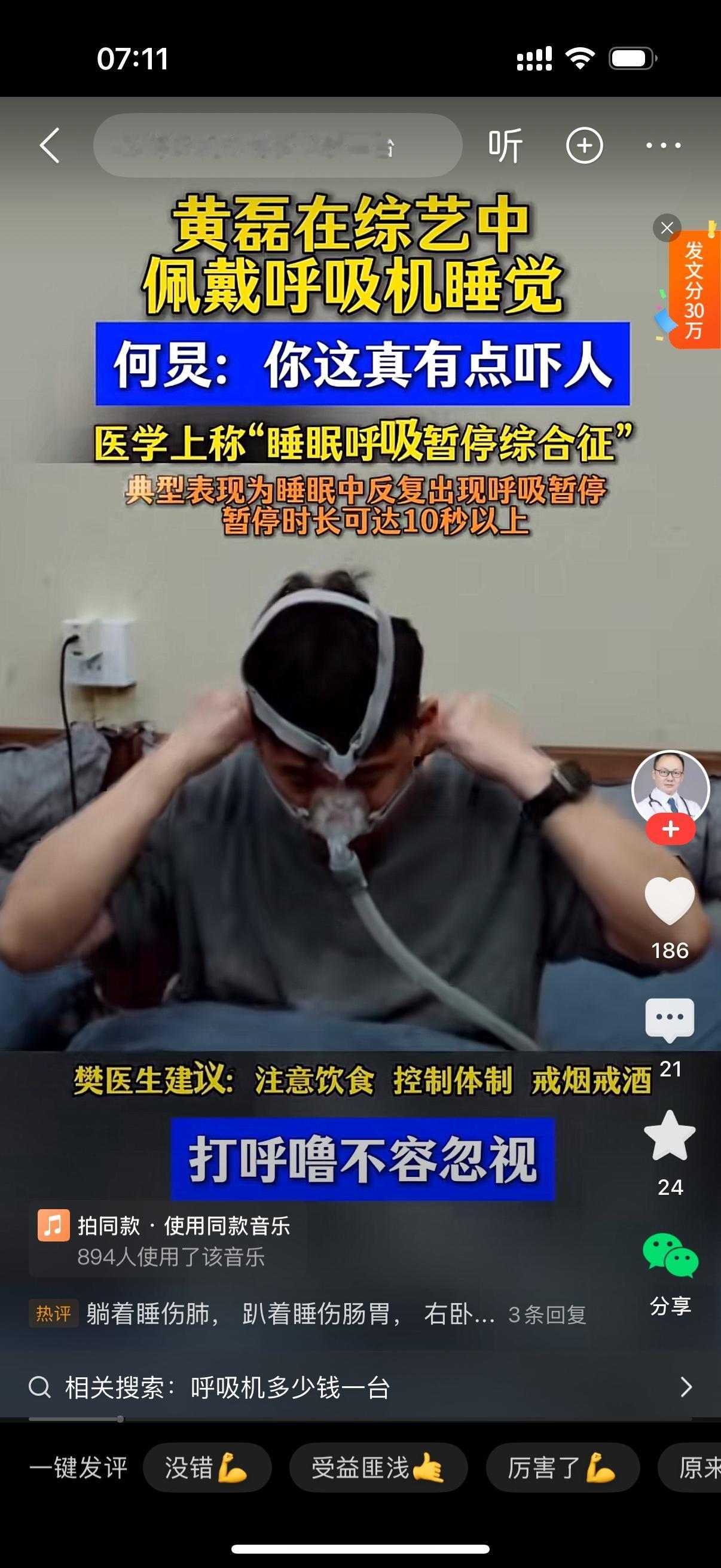 黄磊在综艺节目向往的生活中佩戴呼吸机睡觉,让网友们对黄磊的身体状况表示非常大的担