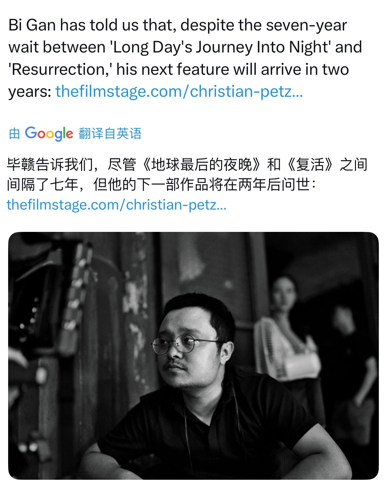 毕赣新片计划毕赣在纽约电影节接受外媒采访时表示,《地球最后的夜晚》与《狂野时代》