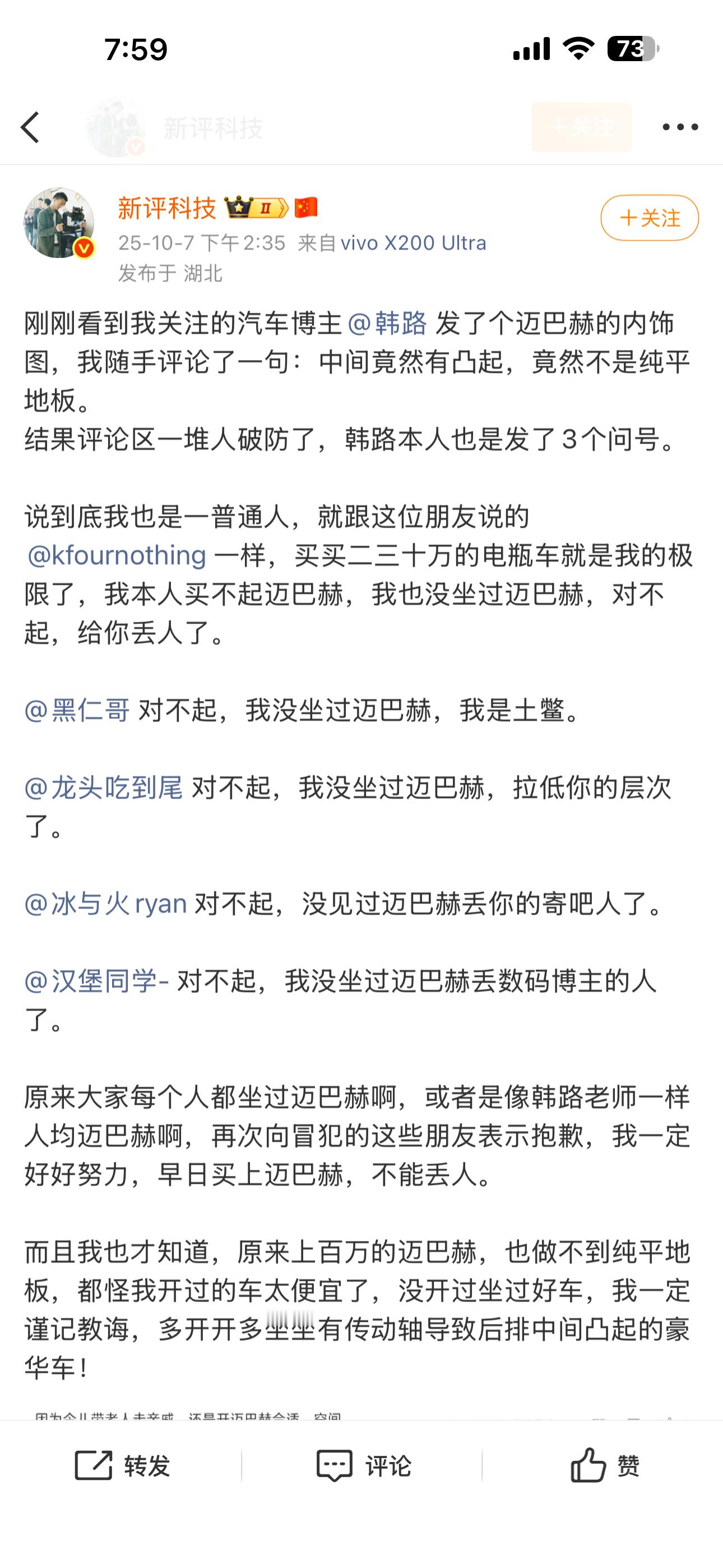 见识低,多看看多学学,没人嘲笑你。但是拿着无知当个性就搞笑了,你这纯属加深数码博主评车的刻板印象。