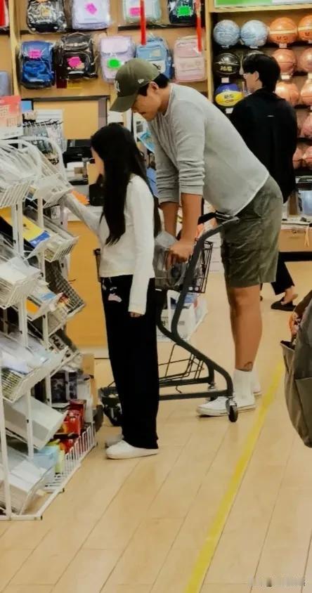 小酒窝和爸爸现身超市买东西! 国庆假期期间,有网友在北京某超市,偶遇小酒窝和爸爸