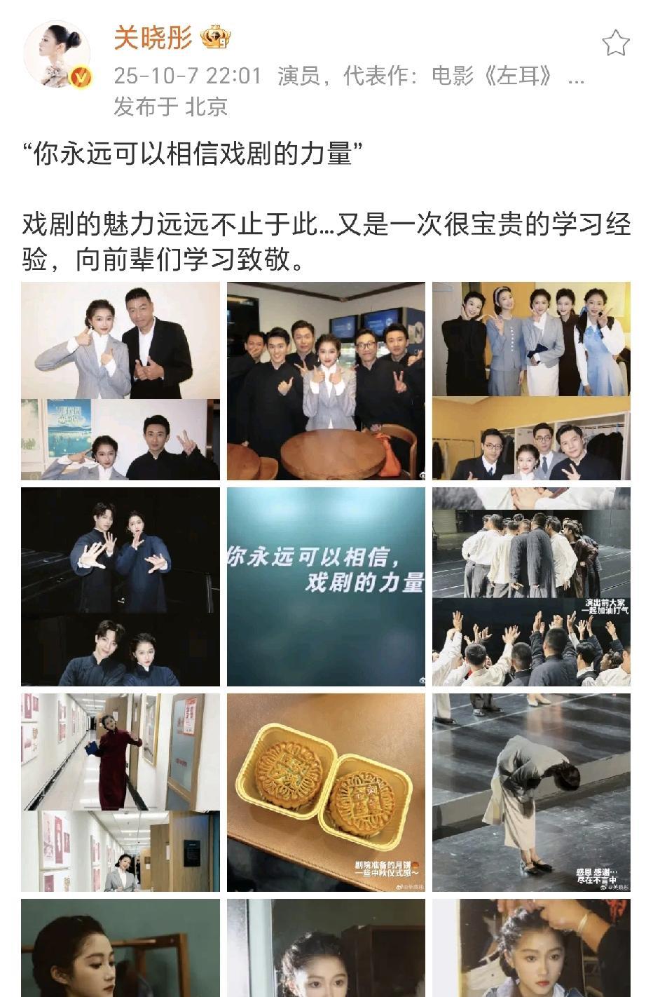 关晓彤:戏剧的魅力远远不止于此! 10月7日,关晓彤在社交平台分享了参与话剧《那