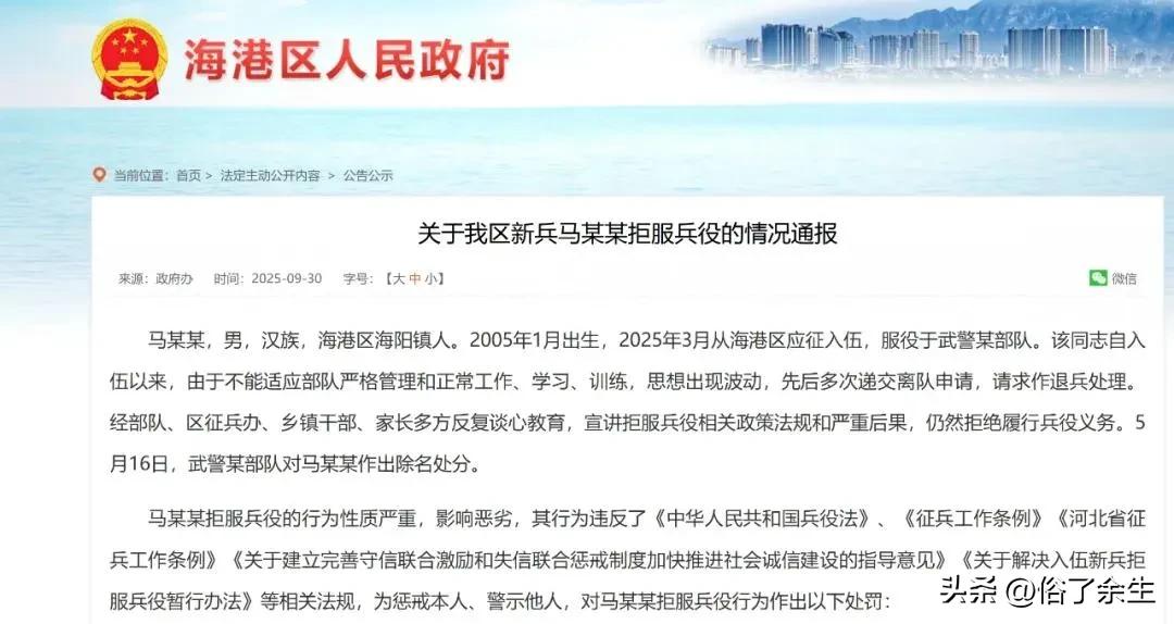 05后拒服兵役被罚8.64万!这些后果影响一辈子,秦皇岛一名05后男子因拒服兵役