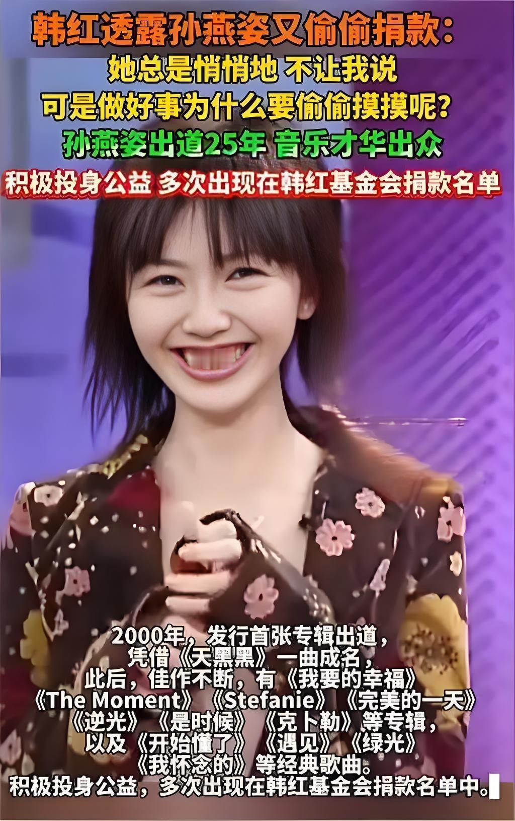 一位来自马来西亚的明星,匿名捐款上千万。 韩红:孙燕姿老师每次都跟我说不要写她的