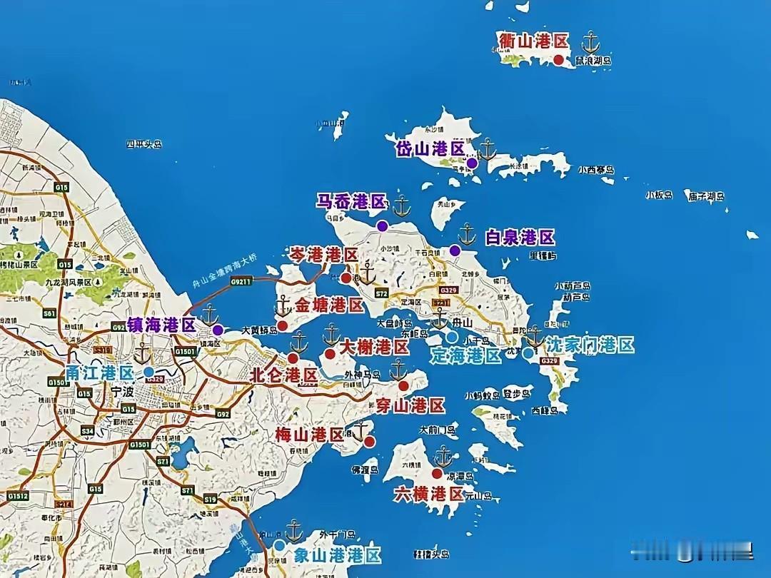 怪不得英国人当年先看中这里,即使到今天北上广深都无比羡慕!看这张图才知道什么叫得天独厚,才明白舟山港是多么神级的存在!数10个岛屿相望, 15-30米的天然深水良港,远远超过上海洋山港、深圳盐田港和广州南沙港,要知道这三个港口也都是顶级的。关键舟山还不是一个港口,多达17个港区,组成一个巨大的港口群,说它是航母级母港都不为过。30万吨油轮、40万吨散货船、2.4万箱的集装箱船,世界最庞大的巨轮都可全天候停泊通行!它的背后是制造业发达的长三角以及流经11个省市的长江经济带,难怪宁波舟山港货物吞吐量多年霸占全球第一!