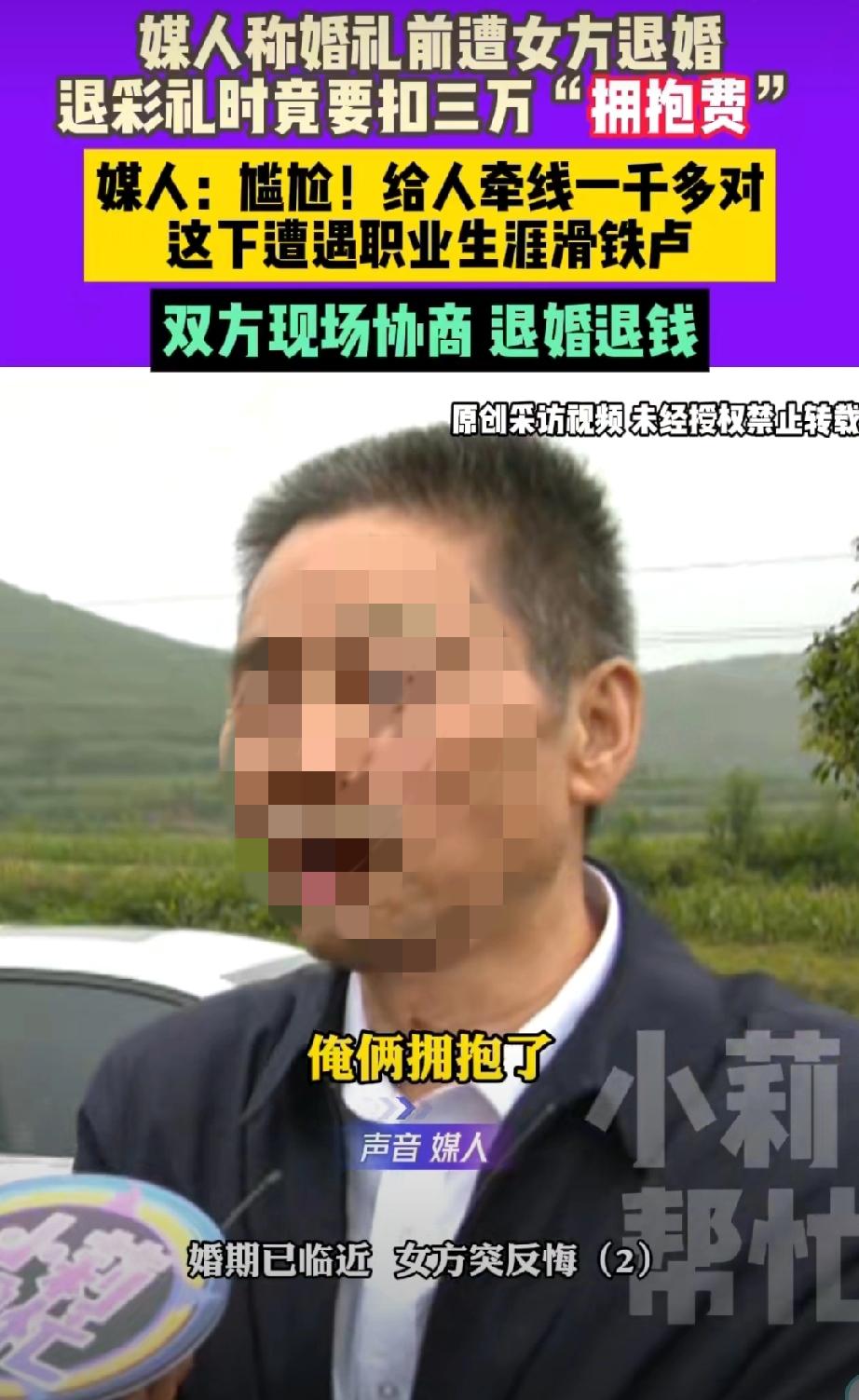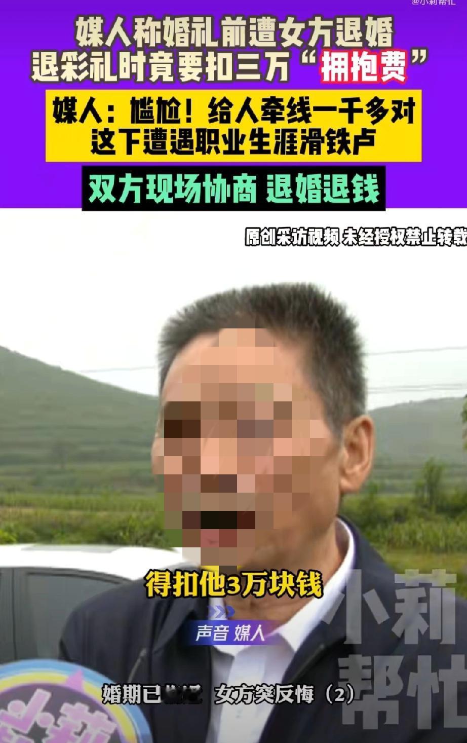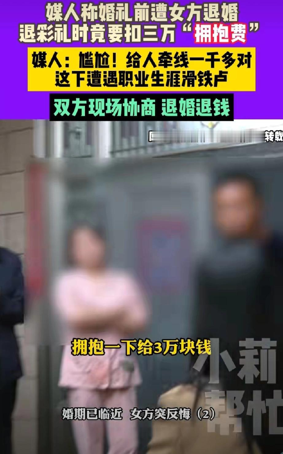 抱一下三万,难怪现在都不敢结婚!这个“职业”好像真有钱途。 近日河南平顶山,网友称,自己去年经媒人介绍认识一个姑娘,相处后感觉还不错就确定了恋爱关系,于是在今年1月份正式订婚,并计划在11月29日举办婚礼,其后女方表示:突然不想和他结婚,没有啥矛盾。女方父亲:拥抱是孩子提的要求,所以要扣掉三万。目前,经过协商,双方达成一致,女方现场退还170500元现金前前后后给了女方20万左右的彩礼以及四金。 这个和敲诈勒索有啥区别呢?只能说现在结婚对女方几乎是没有任何后果需要承担,事情的结果无非都在她们嘴巴一张一合之间。虽然男方损失了 3 万块钱,但是换个角度想想,如果后续发生进一步关系,被女方反手说是强奸,那么就不是三万块钱可以解决的了,值得庆幸吧,未来势必还能再遇良人!