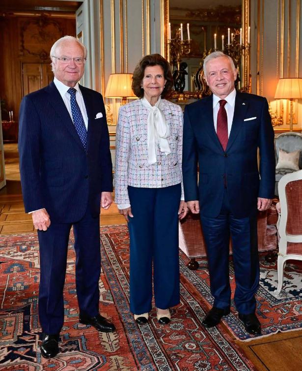 侯赛因王储和拉杰瓦王储妃开始法英进行国事访问,即将为大家贡献各种照片了。 卡尔十六世·古斯塔夫国王、西尔维亚王后和约旦国王阿卜杜拉二世见面留影。 欧洲王室比较注重外交活动,经常出访走关系,拉拢一下彼此的感情同时提高自身影响力。