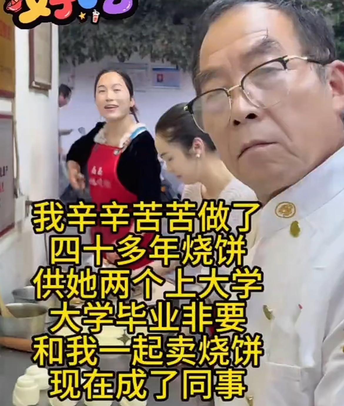 一大爷发视频称两女儿大学毕业回来和他做烧饼,简直气疯了。自己辛苦几十年供他们读书,回头来女承父业,还是做烧饼,这读书的意义是什么?打开大爷的视频看了下,并不简单。他们是搞烧饼培训的,一堆人在他们那里学习,大爷发视频是为了博流量。