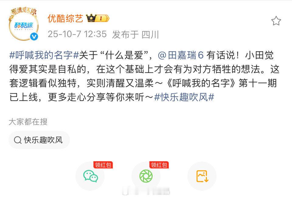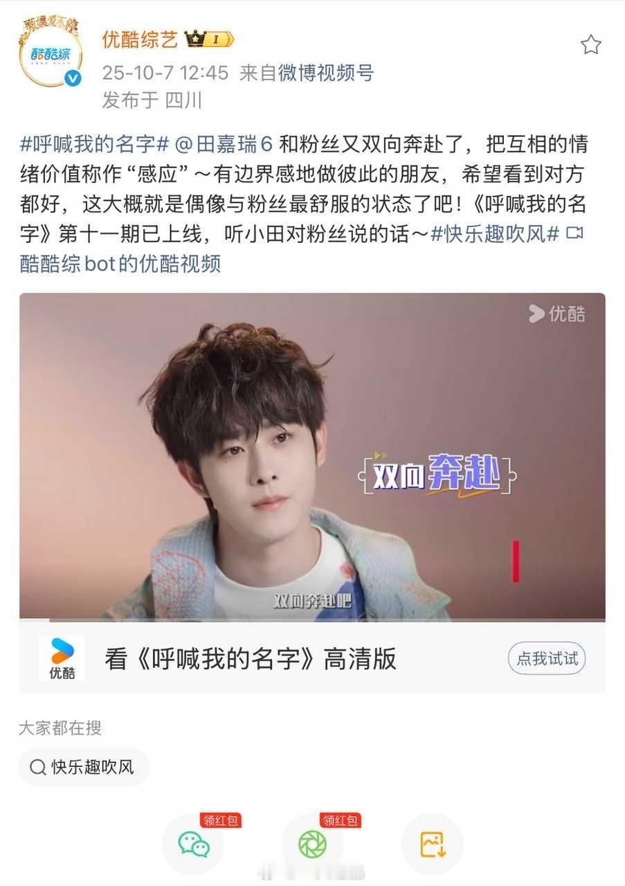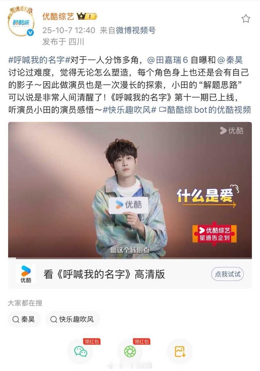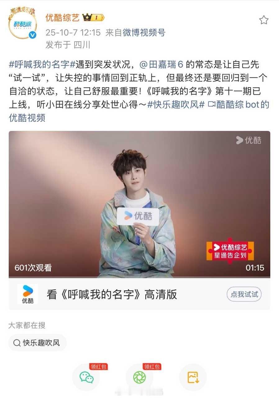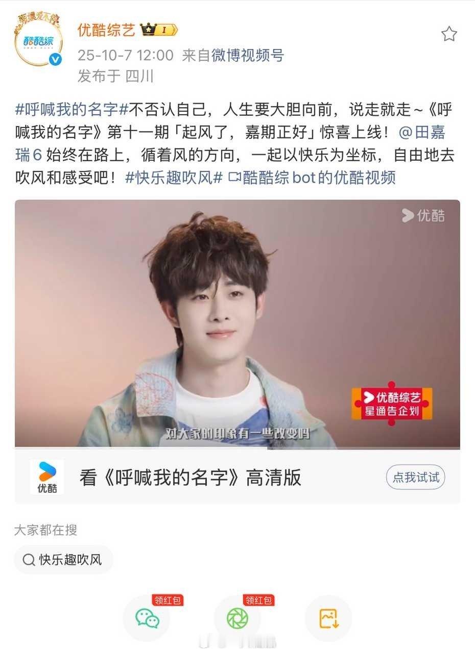 优酷昨天连发十几条田嘉瑞,👖真的好宠好宠呀,田嘉瑞的综艺效果非常棒,大家都期待