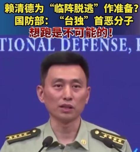 赖清德一伙“台独分子”准备逃跑,中国大陆国防部正面回应,“想逃跑是不可能的”!在