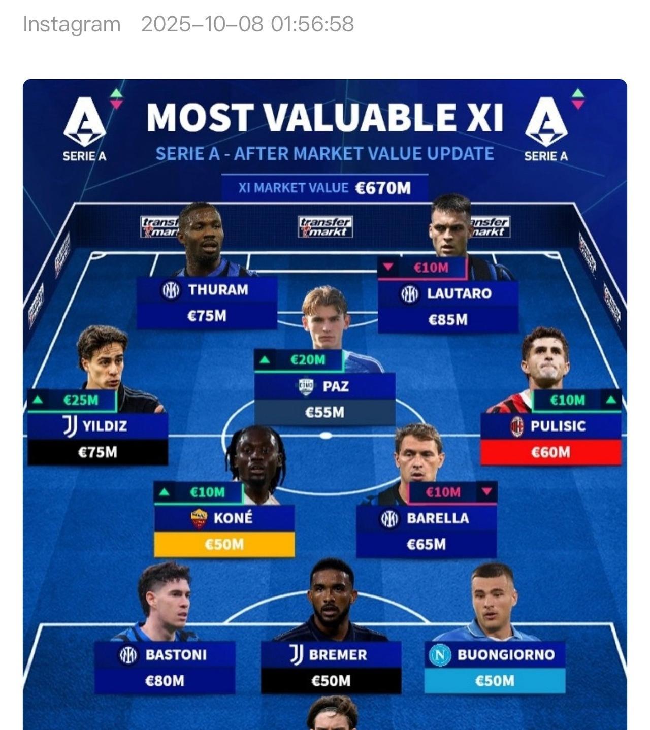 好几个高级货和国米擦肩而过。德转更新了球员身价排名,意甲最贵首发11人中,国米4人入选,分别是锋线的劳塔罗和图拉姆,中场巴雷拉,后防线巴斯托尼。 在这个阵容中,布雷默,科内,帕斯都和国米有过传闻。其中布雷默几乎要官宣了,最后被尤文图斯截胡;而帕斯国米也早早看到了潜力,只可惜皇马和科莫之间逐年递增的回购条款的特殊合同形式,让国米没办法介入谈判;科内则是没拿下卢克曼后,国米突击的对象,但是由于罗马球迷的反对也没能成功。 现在想想,如果这几名球员都在国米,相信国米的竞争力又会上一个台阶,但是没有如果,现在几名球员的身价已经不是国米能接受的范围之内了,希望国米管理层能吸取教训,一定要当断则断,否则就会后悔莫及了。 #国际米兰# #国米# #国米球员#