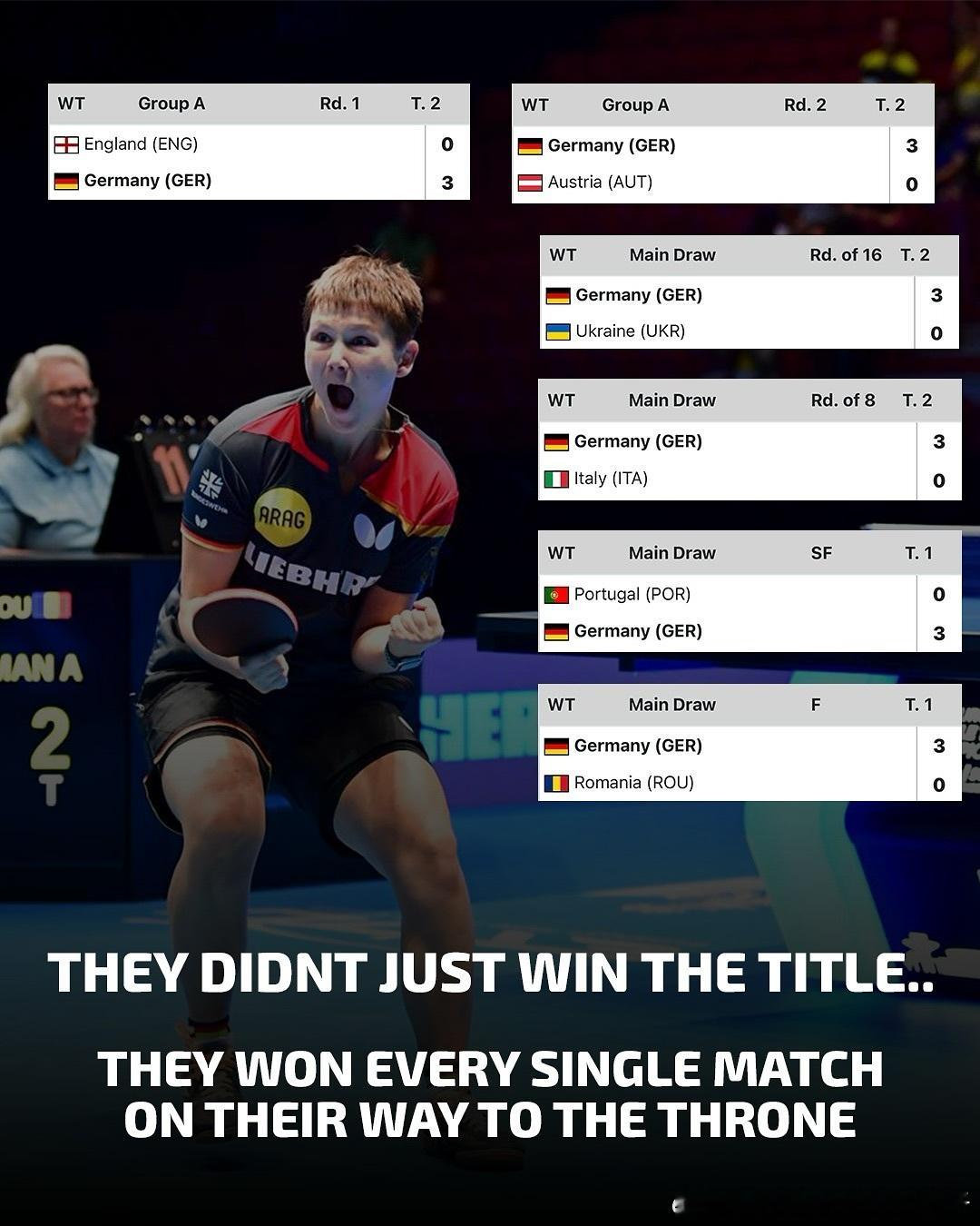 ETTU:2023 年德国队全程完美发挥,每场对决都以 3–0 取胜,绝对的统治力😳从10月12日在扎达尔,德国队将开启她们的欧洲冠军卫冕征程。历史会重演吗?🇩🇪🏓