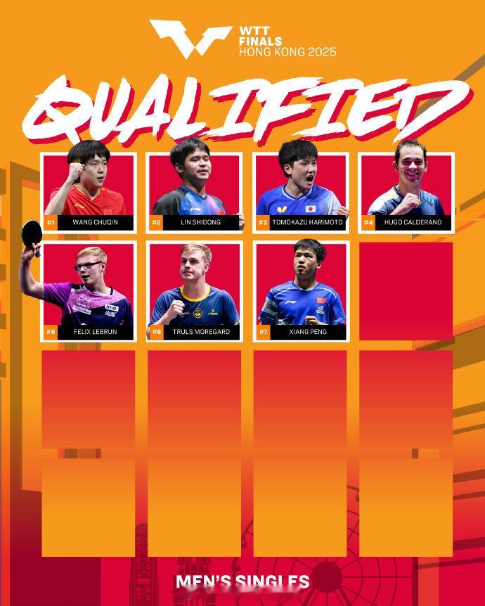男单:王楚钦、林诗栋、张本智和、雨果、F·勒布伦、莫雷加德、向鹏。