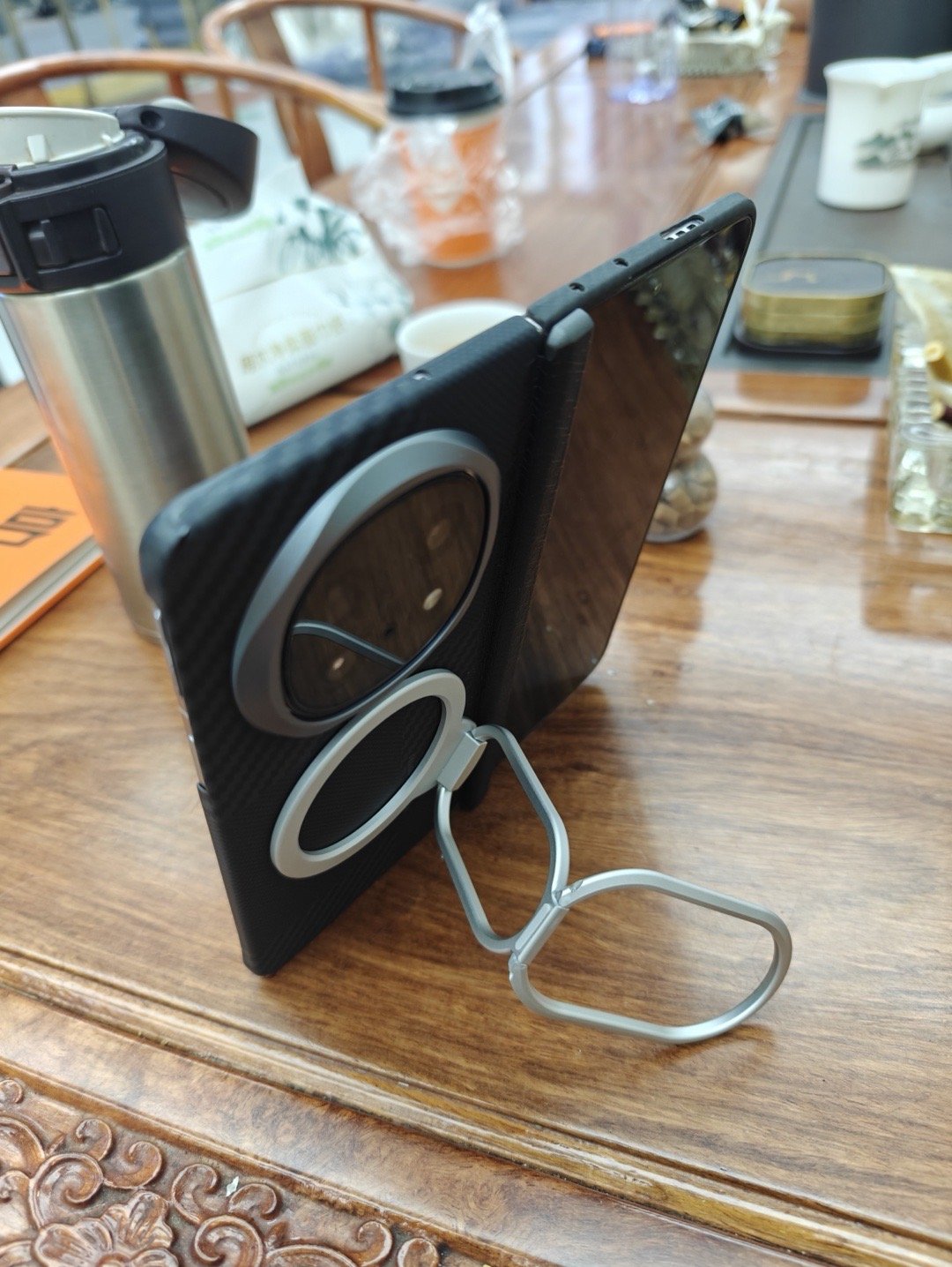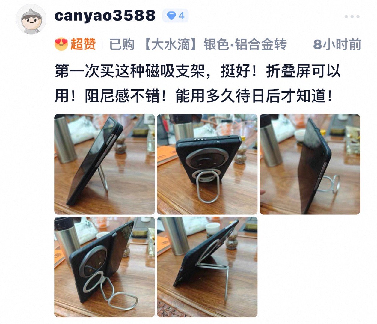 轻至23克的大水滴便携折叠磁吸支架,不仅可以用在直屏机,搭配折叠屏,甚至是