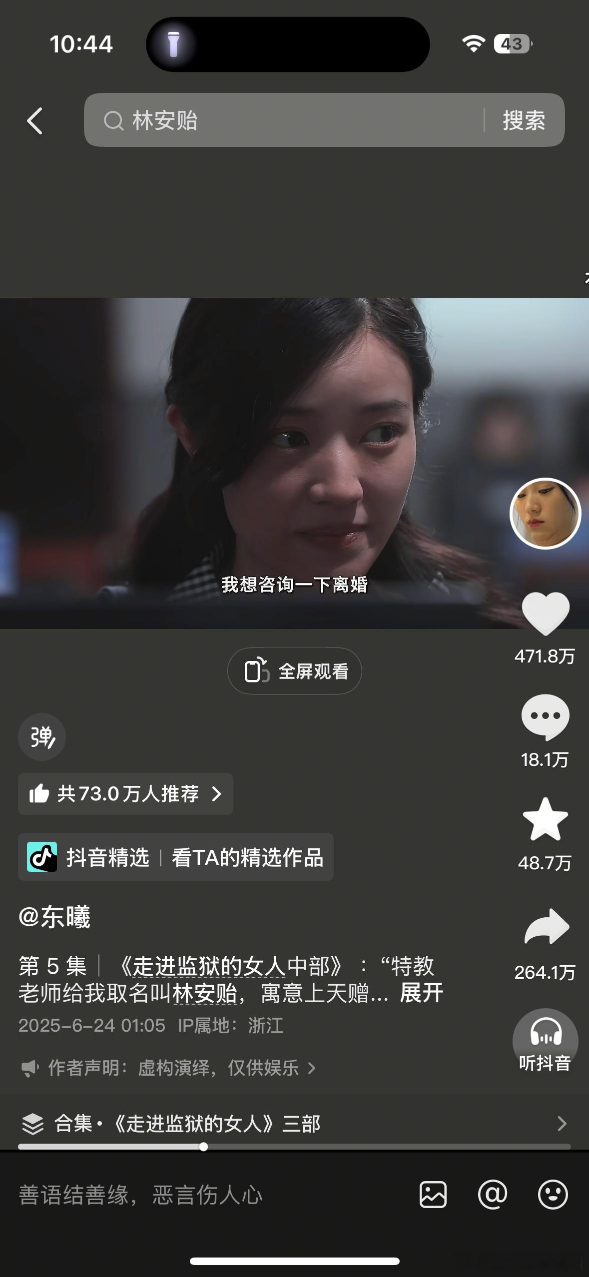 她也好!!东曦不知道是不是自己导的,演的好立意也好
