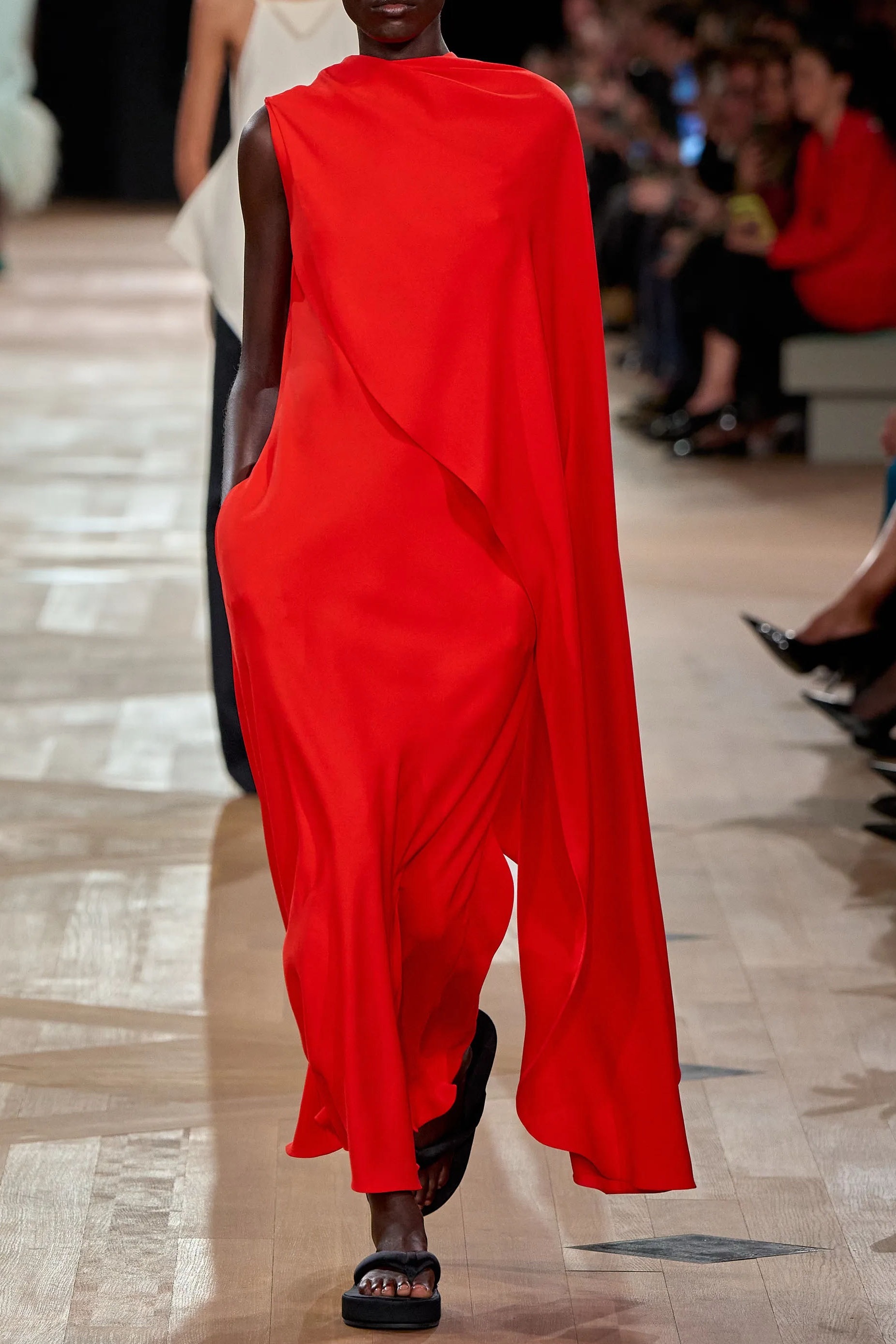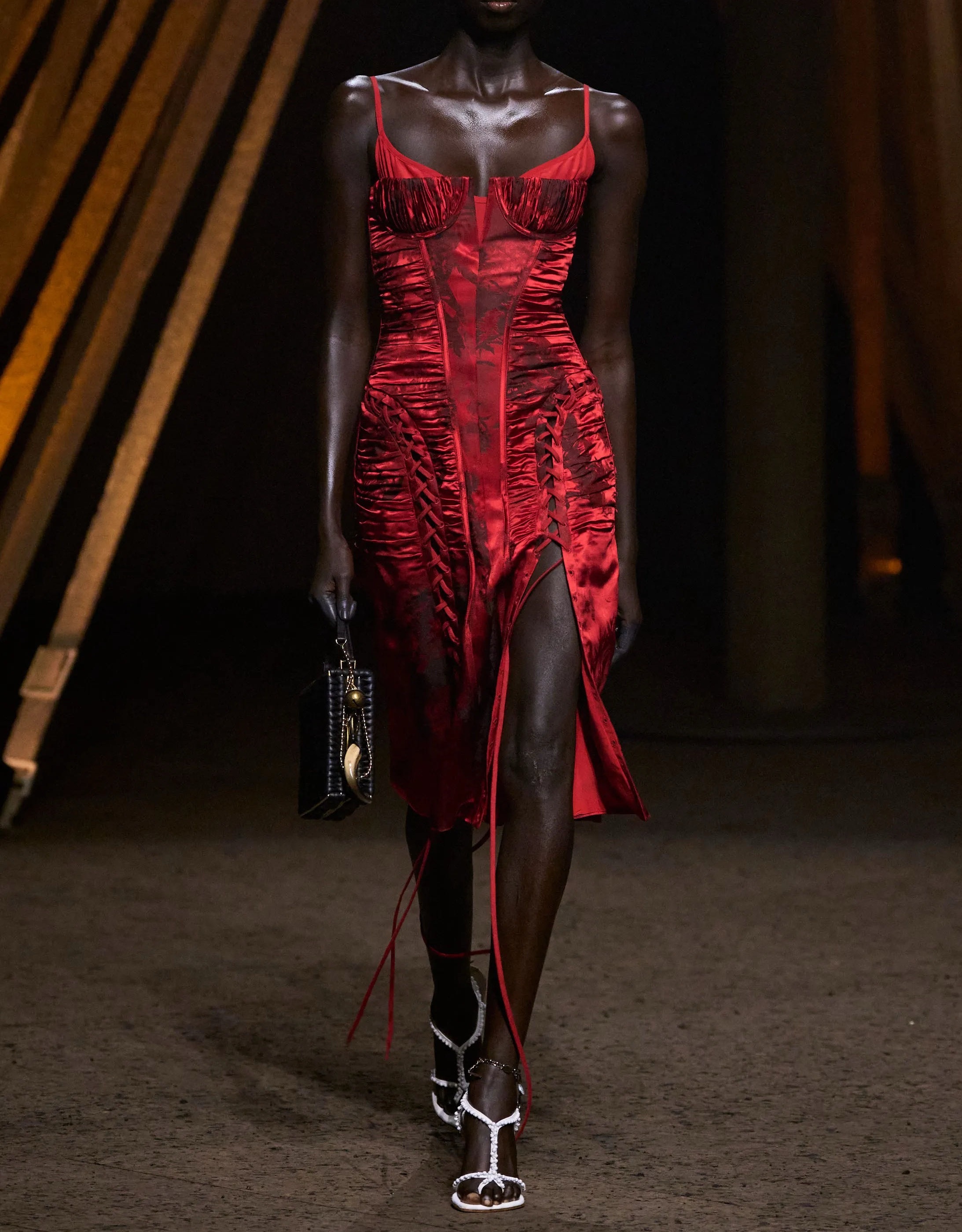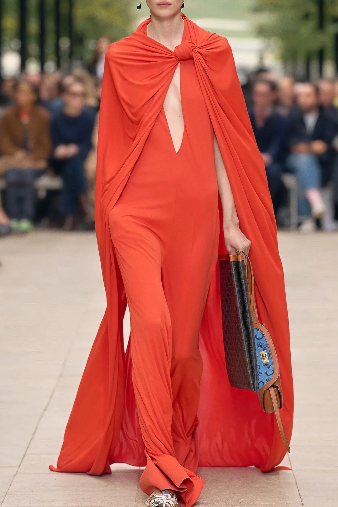 红色依旧是最会“呼吸”的颜色。设计师们用它诠释力量与性感的平衡,从裙装、包包、鞋等。都像是点燃T台的一瞬火光。
