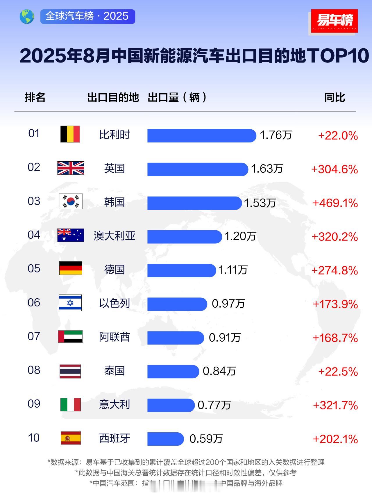 从易车统计的中国品牌八月出海数据来看,出口跟当地政策与环境还是有很大的关系啊[皱眉][皱眉][皱眉]