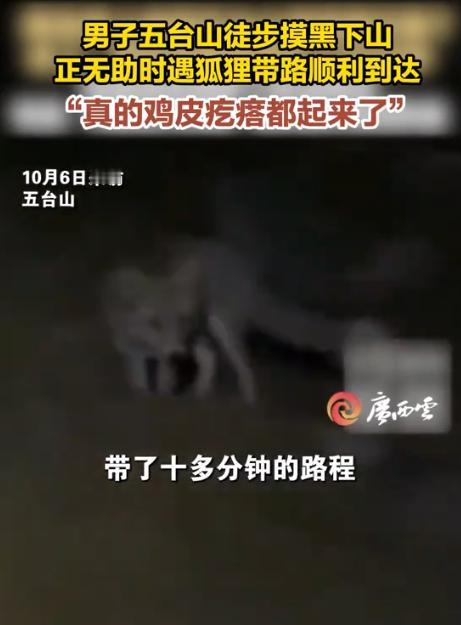 “科学无法解释!”近日,国庆男子去五台山玩,天黑下山时迷了路。正当他无助的时候,眼前忽然窜出了一只狐狸!而狐狸竟然给男子带路!男子:“真的鸡皮疙瘩都起来了!”网友:太有灵性了! 陈先生(化名)是个有十几年经验的老驴友,这次特意挑战五台山38公里环线,打算两天走完。 出发前他检查了帐篷、睡袋、防风衣,唯独忘了充电宝早就老化。 那天晚上八点多,山里天彻底黑透,风呼呼地刮着,灌木丛摇得像在哭。 气温已经降到零下,陈先生掏出手机准备看地图,结果电量只剩20%,充电宝也没电了。 “那一刻真有点慌,前不着村后不着店,连个路标都没有。”他回忆说,当时打算找块大石头后面先避避风,等天亮再说。 就在这时,他看见不远处灌木丛里闪出两点绿光。那光一闪一闪的,他以为遇上狼了,吓得赶紧握紧登山杖。 可等那团影子靠近时,他才看清,是只毛色红亮的小狐狸,毛蓬松得像团火。 狐狸没跑,反而在他脚边绕了两圈,然后转身朝山下的方向走,走几步又停下来回头看他。 陈先生愣了几秒,心想“死马当活马医”,于是跟了上去。 狐狸走得不快,每走几步就停下来回头瞧一眼,始终跟他保持着两三米的距离。 它遇到乱石堆、杂草丛就绕开,走的那条小路还挺平坦。 陈先生边走边举着手机录像,手抖得厉害,嘴里嘀咕着:“这也太神了吧……狐狸真在带我走路?” 大约走了十来分钟,前方突然亮起一片微弱的灯光,那是他出发时经过的鸿门岩检查点。 “我当时整个人都愣住了。”陈先生说,他又惊又激动,刚想上前看个清楚,狐狸却“嗖”地一下钻进林子里,眨眼间没影了。 回到家后,他把这段经历发到了社交平台上,没想到一夜之间火了,网友们炸开了锅: “这不是狐狸,是狐仙显灵!” “我去年在梵仙山迷路,也遇到过一只狐狸带我走出去。” “这狐狸该不会是景区的‘编外搜救员’吧?” 有人还提到五台山的传说,据说那里供奉着狐仙,古时候常有香客被狐狸指引脱险。 不过,专家的解释要“理性”得多。 广东省科学院动物研究所的研究员表示,狐狸的活动范围很固定,可能是陈先生刚好走到了它的地盘。 狐狸回头看人,多半是防备或讨食的反应。 可网友们并不在意科学解释,反而觉得这是缘分:“就算是巧合,也太巧了吧。” 这事儿也算是给喜欢出门旅游的人提了个醒:去山区、野外玩,可得提前把路线弄清楚。 别光想着拍照看风景,地图、天气、备用电源都得准备好。 很多人嫌麻烦,喜欢抄近道、走野路,觉得“能看到别人看不到的风景”,可真要遇上岔路、天黑、没信号,那就一点都不浪漫了。 像五台山这种地方,山高林密,气温变化快,到了晚上风一刮,能冷到骨头缝里。 陈先生算是户外老手,设备也齐全,结果一个充电宝出问题,差点就困在山上。 要是普通游客,后果真不敢想。 所以啊,爬山、徒步这种事,最好结伴而行,有人照应。 实在要单独去,也得把行程告诉家人朋友,带好充电宝、应急药品、防寒衣。要是迷路了,千万别乱跑,更别想着“自己找路下山”,那样只会越走越偏。 找个安全的地方避风、保暖,等救援队来才是最稳妥的。 陈先生能遇到那只狐狸,算是走了大运。 可这种事,十年碰不上一次。 别想着自己也能遇上“灵狐显灵”,真到了那种时候,靠的不是运气,而是准备。 出门在外,安全永远比刺激更重要。 对此你怎么看? 信源:法治进行时