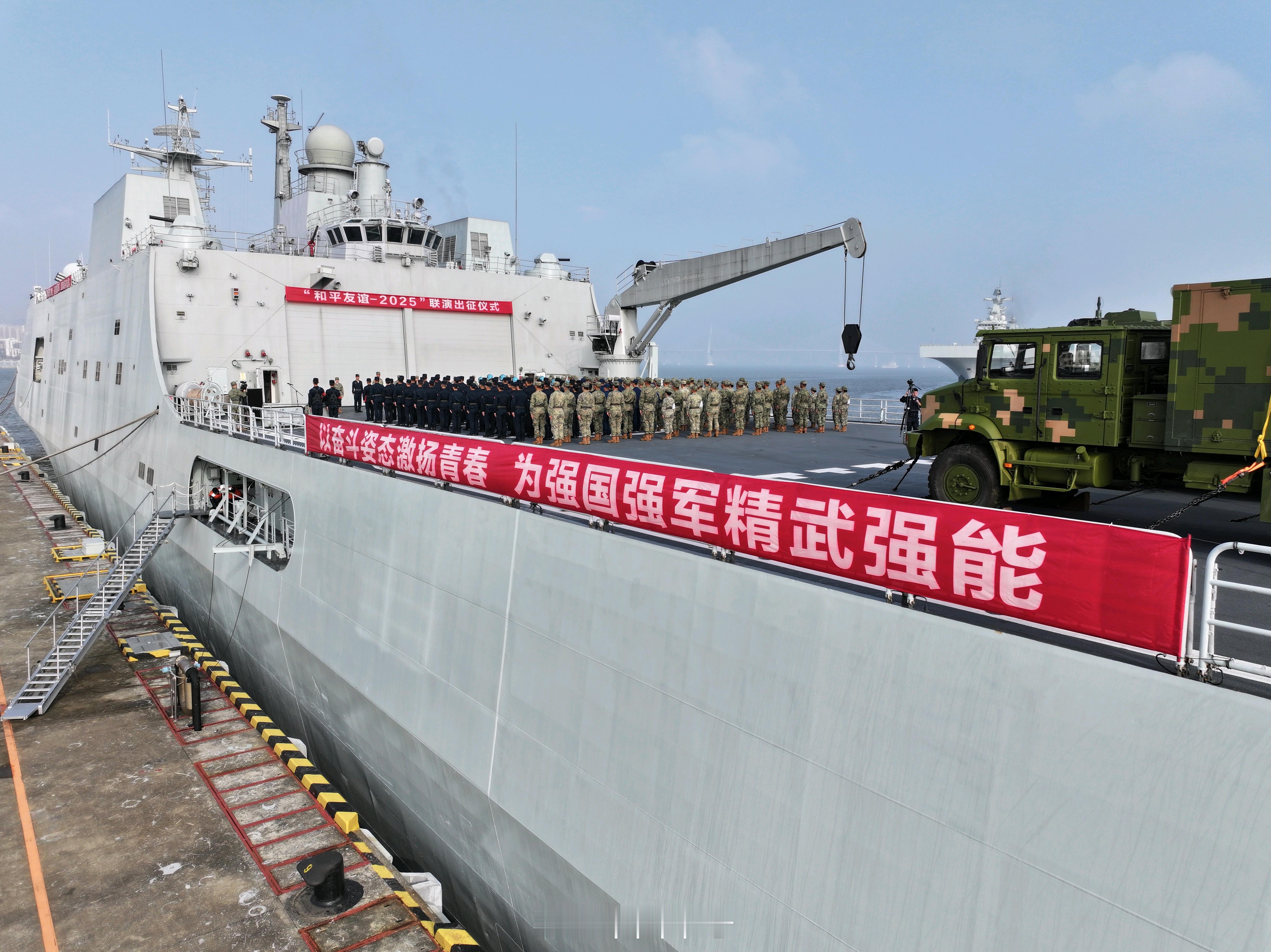 今天上午,参加中马“和平友谊-2025”联演的071井冈山舰从湛江出发
