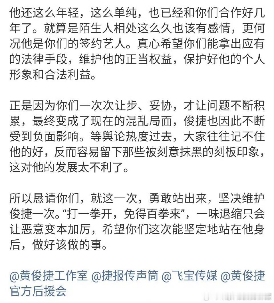 黄俊捷粉丝向工作室维权要求尽快告黑,确实是该好好维权了,粉丝已经是椎心泣血情真意切的在提出意见了 ​​​