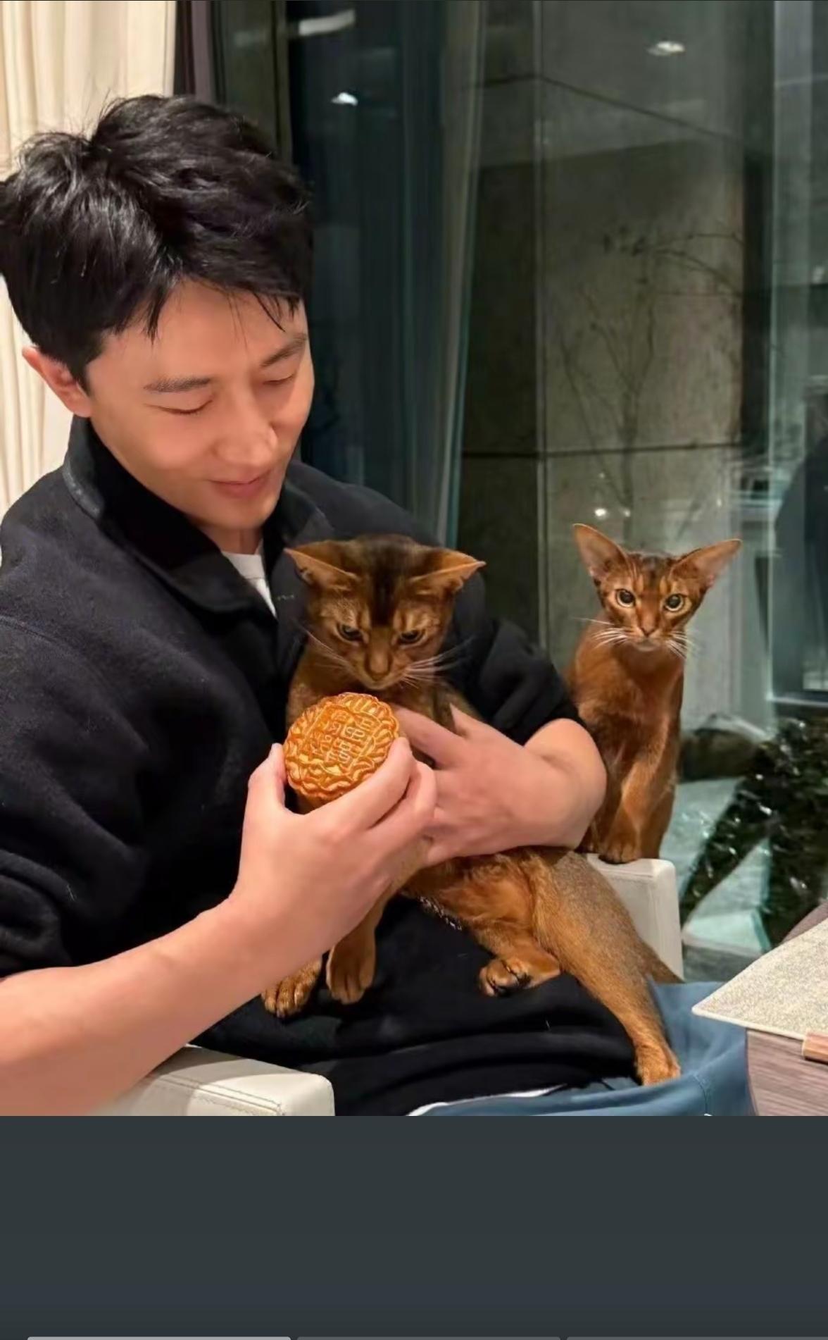 黄轩这中秋节过得很是低调呐!就一个人和俩猫,对面拍照片的那位愣是没现身——我说黄