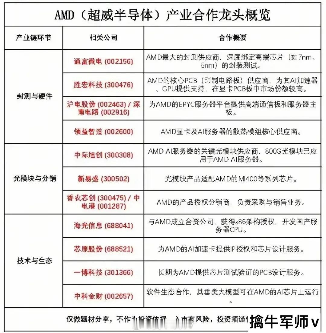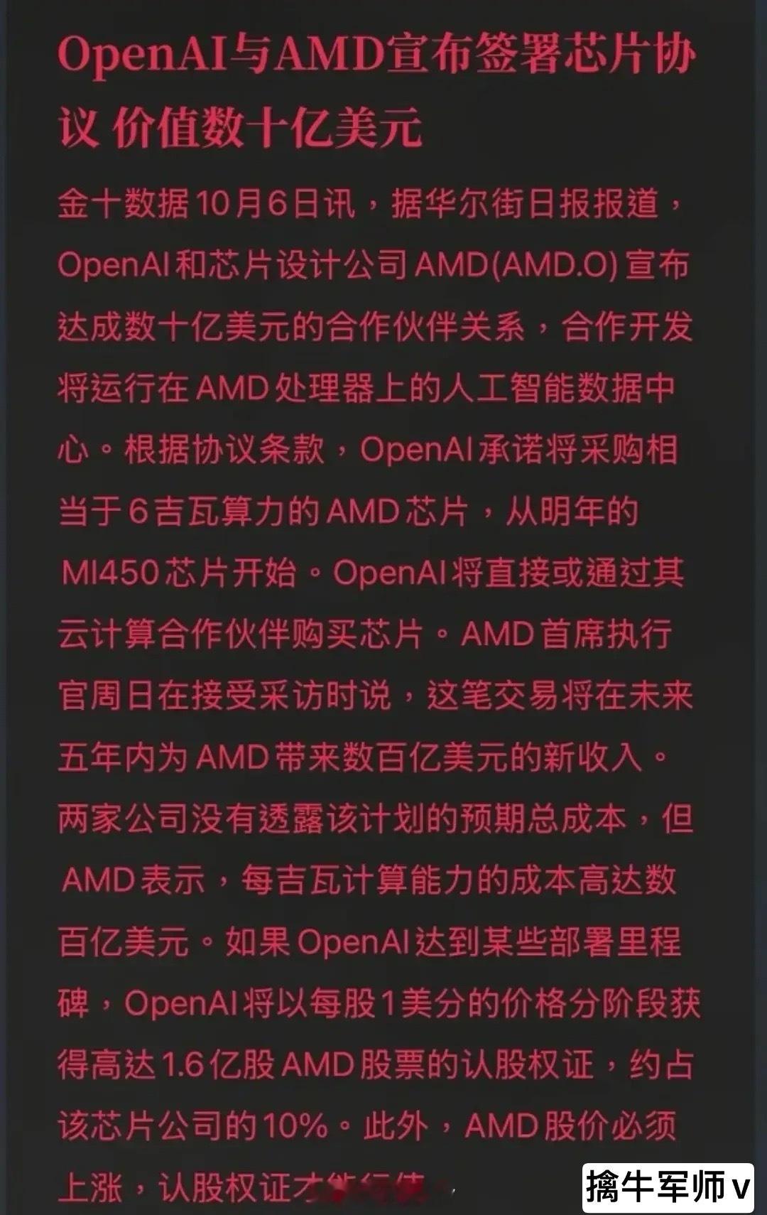 国庆假期重磅事件:OpenAI在官网宣布与AMD达成百亿美刀合作协议,将部署总计6吉瓦的AMD GPU算力。AMD相关概念龙头代表有哪些?
