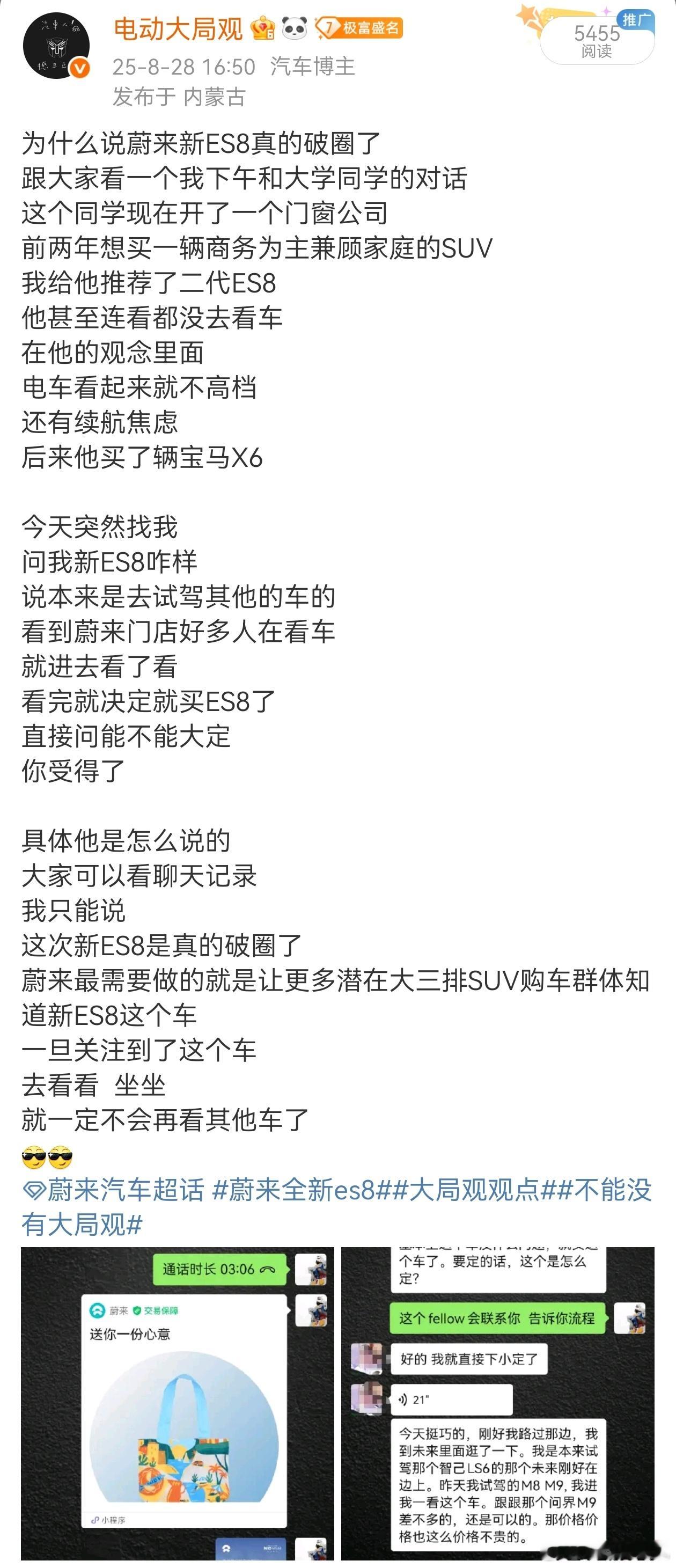 蔚来汽车[超话]蔚来全新es8大局观观点