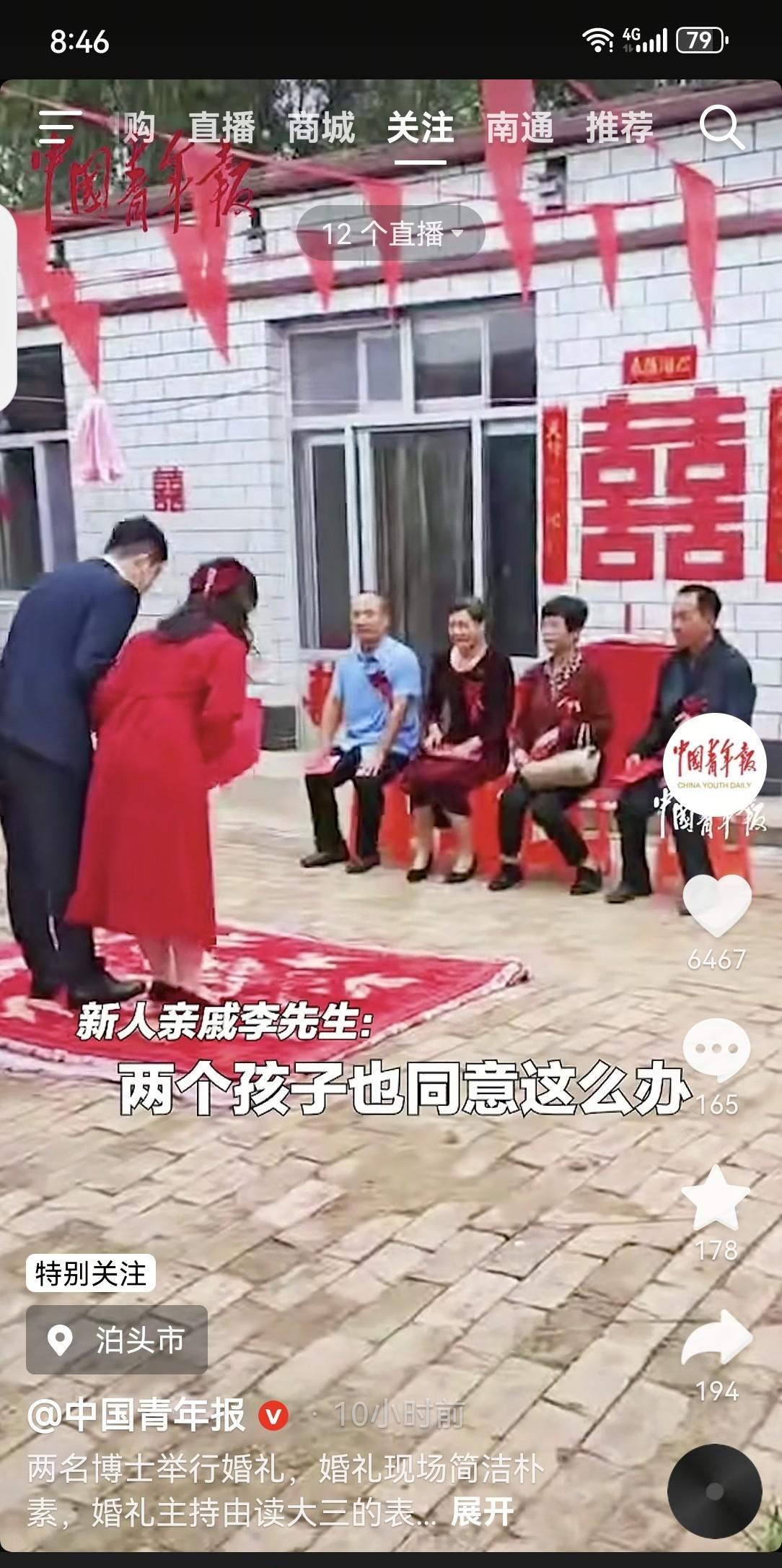 河北省泊头市一对博士夫妻在简易婚礼上,给坐在一张长椅上的男女父母施举躬礼,婚礼主持也不是外人,是新郎表弟,也是一名在校本科大学生。 他们这样做在世俗人看来太过于节俭。 可我们不能把简易婚礼看成抠门或者是不懂“人情事故”,只能说明人家思想境界高。 回头看看农村婚礼:彩礼只是摆出第一道龙门阵,接下来上桥礼下轿礼,然后给翁姑献茶礼,再要改口费。唉!反正是巧立名目要钱,好端端婚礼却搞得漫天铜臭味。 泊头双博士的婚礼值得我们借鉴,更应当在全国推广! 信息来源于网络,仅代表个人观点。
