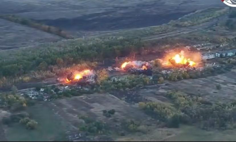 真是服了,俄军四枚重型航弹!向乌军武装部队第43机械化旅的部署点进行轰炸!位于库伊洛夫卡定居点方向。 俄苏-34战斗轰炸机四枚Fab-500航空炸弹!一字排开瞬间四连爆炸!这是怎么做到的?火光四射,威力巨大。 恐怖的爆炸威力肉眼可见,乌军第43机械化旅据点爆炸后,掀起了四四朵巨型蘑菇云!这种火力覆盖让乌军非常难受。 俄军这种反人类的航弹轰炸,据点上的乌军没被炸中,都会被震晕,血管都会被震爆吧! 俄军最近一年使用重型航弹非常狠,频率非常高!前苏联的库存看来非常足。但对于乌军来说很头疼!一枚下来天崩地裂,瞬间消失,成了失踪的人。