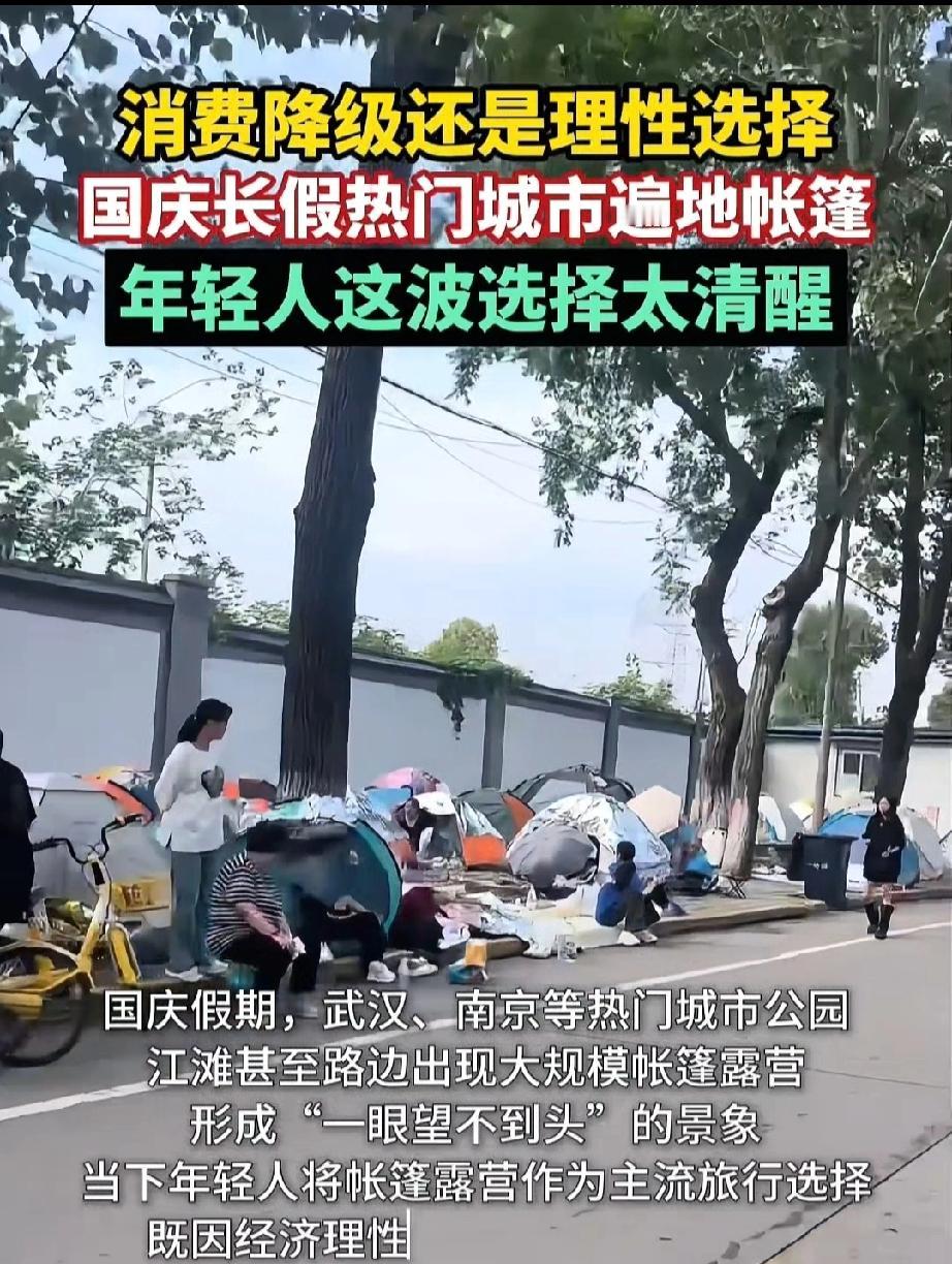 今年国庆假期,武汉街头的帐篷军,让不少酒店的老板傻眼了:原想着提价后好好收割一番,没想到这些年轻人来这么一出,居然不住酒店、民宿,在街道两边支起了帐篷!让你扑一场空,设计好的套路居然没人钻。 看过一个视频,一个老板让00后加班被断然拒绝,老板说,你不加班,怎么买到大房子,怎么买到好车。这位00后说,我为什么要买大房子,小房子够住就行,为什么要买好车,骑个电驴不要停车费,保险费油费不香吗?老板直接傻眼。 不是说,捞女很多,对不起,我不谈恋爱了好不好?结婚要房要车要彩礼,对不起,我不不结婚了好不好,你教育费高,你房价高,想套牢我的一生,对不起我不生总可以吧,你又能把我咋的? 现在的年轻人真是活明白了,正用脚投票,对现实做出无声的反抗。心里没有牵绊才能无所无惧。当我们说现在的年轻人没有责任感时,我们的社会对他们又有哪些责任感呢?