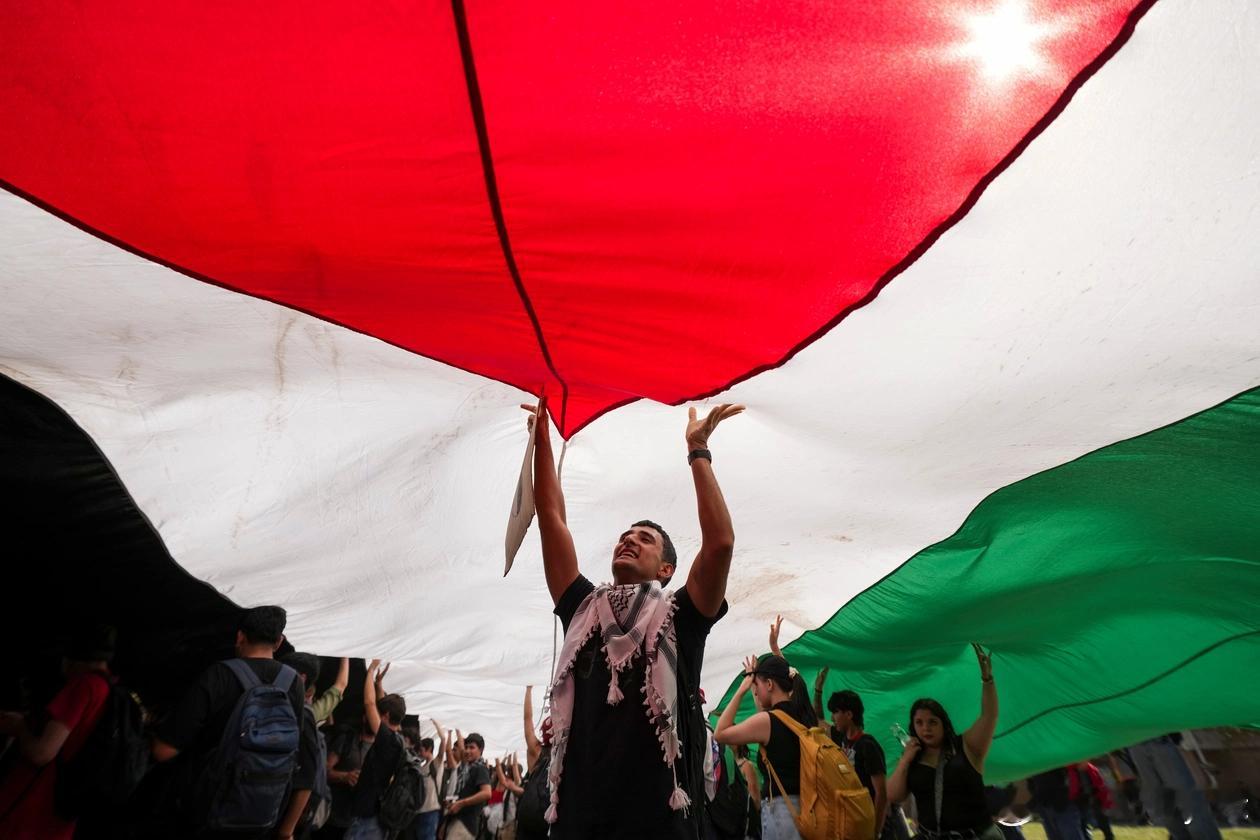 图2:2025 年 10 月 7 日,智利圣地亚哥,大学生举行示威活动,支持巴勒斯坦人。| Esteban Felix/AP
