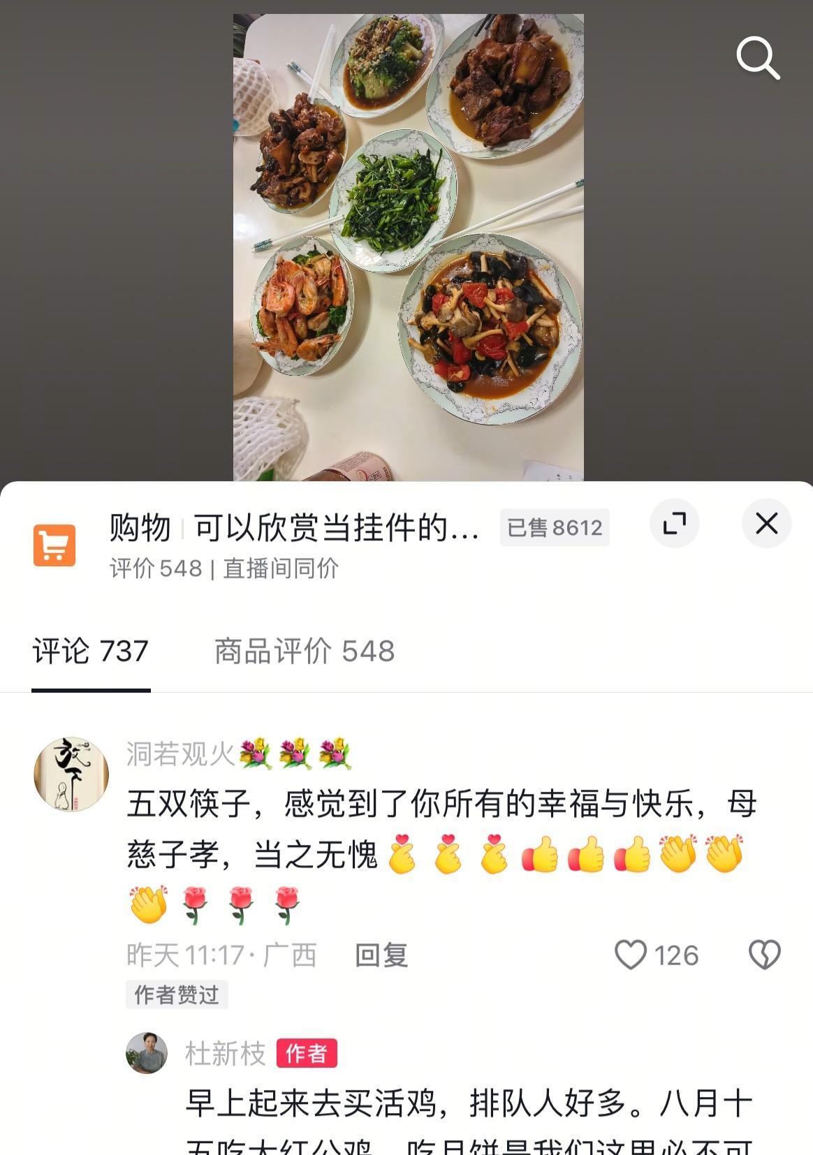 老杜晒中秋家宴,眼尖的网友一下子数出五双筷子,留言问老杜,老杜没有否认但也没有直接承认,只是说她早上起来去买大红公鸡,因为他们那里八月十五吃活鸡,吃月饼,让网友感受到了她正在经历阖家之欢,不直说也不否认,老杜也学坏了,懂得“暗戳戳”了,这明显给某些人心里扎刺啊!#老杜92年事件# #二八事件追踪#
