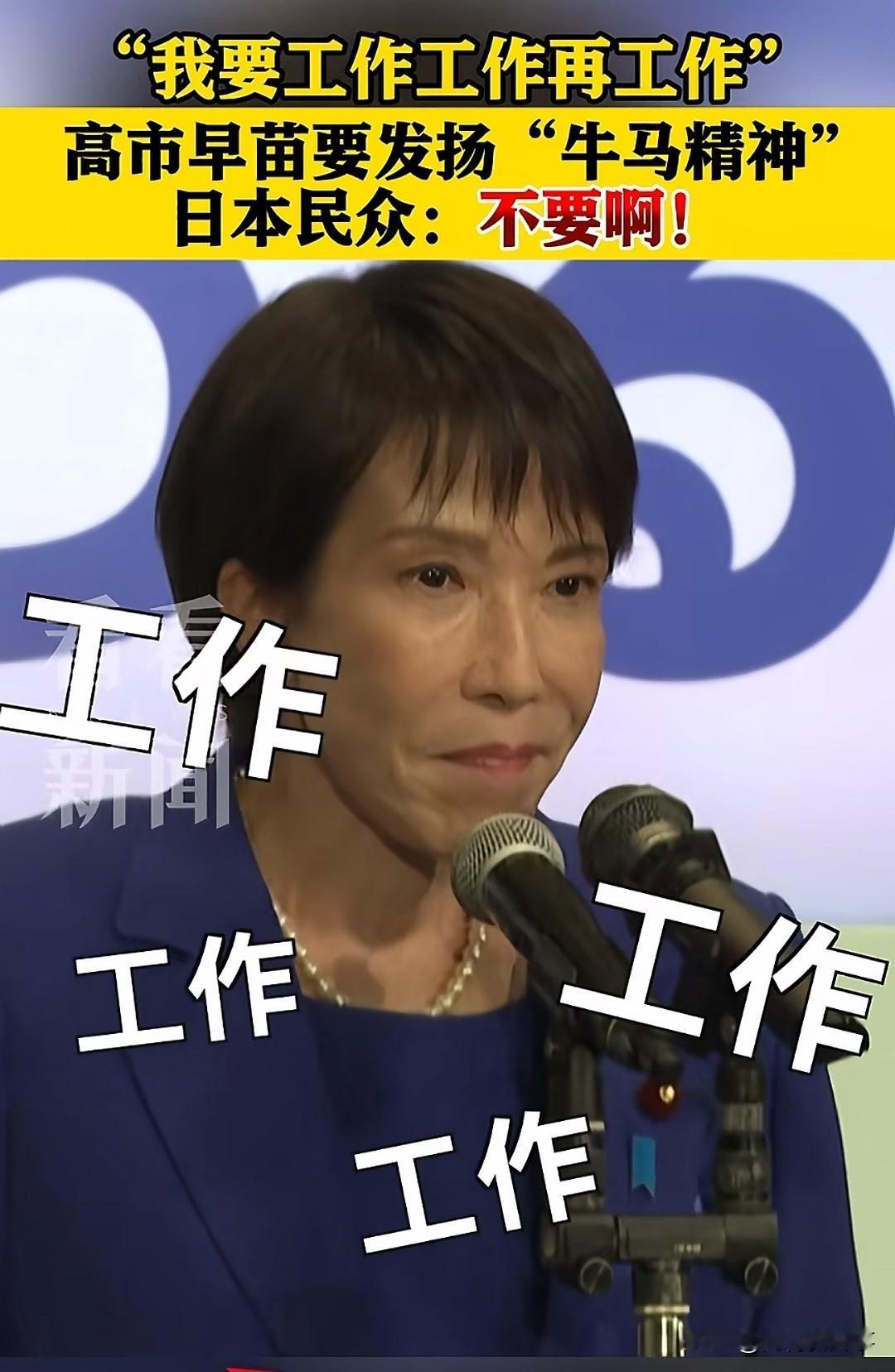 大家都好奇高市早苗到底说了什么话惹日本人众怒! “日本自民党新总裁高市早苗刚上任,就放话要让议员‘像拉马车的马一样’拼命工作,还说要抛弃工作生活平衡!这操作把日本民众直接惹炸了! 咱就说,日本社会为了摆脱过劳文化,从法律到社会共识都在努力推进工作生活平衡,结果她这一句话,简直是往大家痛点上戳啊!多少人被过劳搞到身心俱疲,她倒好,直接喊着要回到‘拼命干活’的老一套,这不是找骂吗? 你觉得这种‘牛马言论’离谱不?要是你遇到老板让你像马一样干活,你会忍吗?来评论区聊聊!”高市早苗能否挺过2026年 高市早苗牛马言论惹日本人众怒