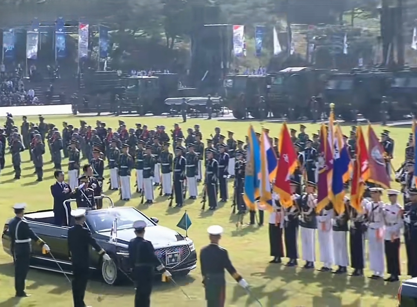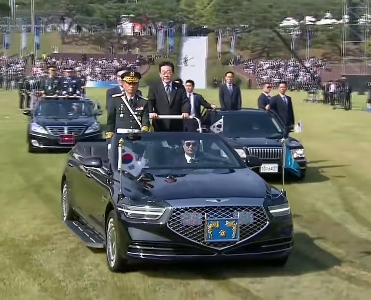 宇宙强国韩国的阅兵确实不同凡响,他们不是总统在阅兵,而是兵在阅总统。 世界上所有国家的阅兵活动,都是受阅部队列装走过观礼台接受检阅。 无论是散漫的美国阅兵,还是腰杆笔直的红场阅兵,亦或是玩杂耍的印度阅兵,都是士兵行进中给观众检阅。 然而韩国人的阅兵是找一块大草坪,然后李在明站车上绕着受阅韩军溜达一圈算结束。 这与其说是韩国总统李在明阅兵,不如说是韩军在阅李在明。
