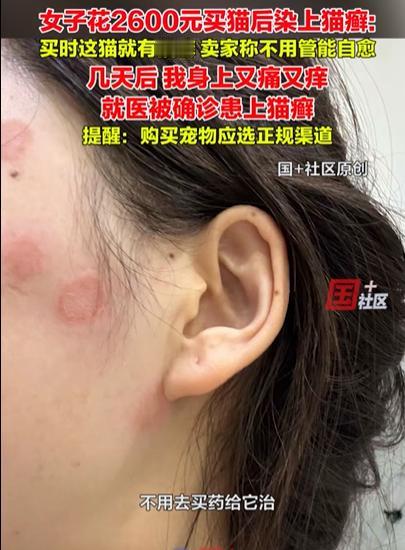 “担心的事还是发生了!”浙江一女子花2600元买了只猫,可没过几天,女子身上就开始奇痒难忍,并且出现红斑,她一开始以为是蚊子咬的,可随着红斑越来越多,她才意识到不对劲,急忙去医院检查,被诊断患上了猫癣!   这名女子满怀期待地花2600元购买了一只宠物猫,本想为生活增添一份陪伴与乐趣,却未曾料到,这份喜悦很快被一场突如其来的健康危机所取代。   据她回忆购买时猫咪身上已有轻微的皮肤问题,卖家却轻描淡写地表示“不用管,能自愈”,然而几天后,她自己的皮肤开始出现异常反应,起初只是零星的红斑和瘙痒,她以为是普通的蚊虫叮咬并未在意。   但随着红斑逐渐增多,瘙痒感愈发难以忍受,她才意识到问题的严重性,急忙前往医院就诊,最终被确诊患上了猫癣。   这位女子的经历正是猫癣传染性的一个典型例证,她购买的猫咪本身携带真菌,而卖家“能自愈”的说法显然缺乏科学依据,猫癣的自愈可能性确实存在,但通常仅限于症状轻微、免疫力较强的猫咪,且自愈过程可能长达数月,期间传染风险极高。   面对这一诊断,女子无疑陷入了身体与心理的双重困扰,一方面猫癣带来的瘙痒和皮损严重影响了她的生活质量,另一方面她不得不将刚刚建立感情的猫咪退回给卖家,这种情感上的割舍同样令人心疼。   对于这起事件,网友们的看法呈现出明显的两极分化,一位网友评论道:“卖家太不负责任了!明知猫有病还卖,还忽悠人说能自愈,这不是坑人吗?2600元买来的不是陪伴,是一身病和一堆麻烦!支持女子维权,必须让这种无良商家付出代价!”   另一位网友则表达了不同的观点:“虽然同情女子的遭遇,但作为宠物主人,自己也应该多了解一些养宠知识,买猫前不仔细检查,买后发现问题又轻信卖家的话,直到自己被传染了才重视,这种‘后知后觉’的态度其实很危险,养宠物不是一时兴起,而是需要责任心和学习能力的”。   这起事件引发的社会思考,猫癣的传播并非不可防不可控,但它的发生却暴露了宠物交易、饲养链条中的多个薄弱环节,从卖家的诚信经营,到买家的谨慎选择,再到日常的科学养护,每一个环节都至关重要。   或许这起事件能成为一个契机,让更多人意识到,宠物的健康与人类的健康紧密相连,唯有以科学的态度、负责任的行为,才能真正实现人与动物的和谐共生,而那位浙江女子的经历,也以最直接的方式提醒我们,在迎接一个新生命进入家庭时,爱与责任缺一不可。   对于女子的遭遇,大家有什么看法?   --------------------------------