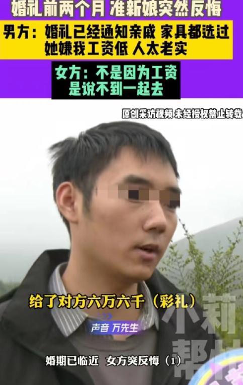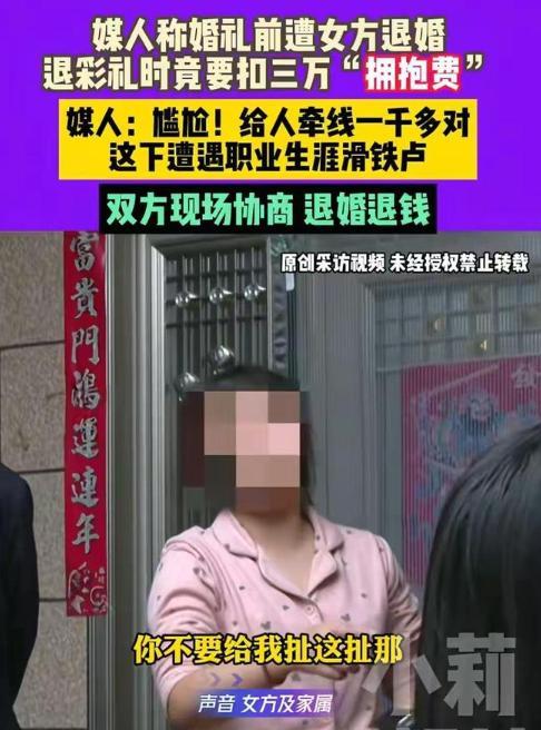 河南平顶山,万先生经媒人介绍认识了一女子后两人迅速订婚,男方花20万,含6万6彩礼、6万四的首饰等。定好婚期、拍了婚纱照、男方家也做好了准备后,女方突然反悔。男方要求退20万,女方要扣3万“拥抱费”,70多岁的媒人称自己介绍成功了1000多对,没想到会遭遇事业的滑铁卢。 河南平顶山的万先生,去年经人介绍认识了一个姑娘,处了段时间觉得合得来,就确定了恋爱关系。 姑娘第一次上门的时候,万先生按当地规矩给了24000块钱的红包,之后双方在今年1月正式订了婚,把婚礼日子定在了11月29号。 为了这场婚礼,万先生前前后后花了不少心思,光是彩礼就给了6万6,买“四金”花了4万,还有家具、酒店预订这些杂七杂八的开支,加起来差不多20万,几乎掏空了家里的积蓄。 眼看离婚期就剩一个月,婚纱照早就拍好了,酒店也交了定金,亲戚朋友更是一个个都通知到了,万先生一家满心期待等着办喜事,可没成想,女方突然说不结婚了。 这消息像晴天霹雳,万先生想打电话问问原因,结果直接被女方拉黑了,连沟通的机会都不给。 没办法,万先生只能找当初牵线的媒人帮忙。 这位媒人可不一般,70多岁了,做这行几十年,成功撮合了一千多对新人,还是头一回遇到这么离谱的事。 媒人陪着万先生一家,还有《小莉帮忙》的记者一起上门找女方要说法,可女方那边的态度更让人窝火。 一开始说“没什么矛盾,就是不想结了”,后来又改口说“性格不合,没话题”,翻来覆去没个准话。 等说到退彩礼的事,更荒唐的来了,女方竟然提出要扣3万块钱,理由是拍婚纱照的时候,摄影师让两人抱了一下,这3万是“拥抱费”,说是自己吃亏了。 这话一出口,别说万先生了,连见多识广的媒人都气炸了,当场就说:“我做了这么多年媒人,从来没听过这种道理!” 女方后来又变了说法,说这3万不是“拥抱费”,是恋爱期间的花销。 可万先生记得清清楚楚,恋爱时给女方买的平板、手表,这些贵重物品女方提都没提要还,现在反而要扣钱,这哪说得通? 双方吵得不可开交,女方急了还推搡了70多岁的媒人,女方父亲也在旁边帮腔,场面一度失控,最后还是记者赶紧劝开才没闹得更僵。 这事传到网上,网友们也议论纷纷。 有人说:“这3万的拥抱也太贵了吧,之前听说有的公园还有2块钱一个的拥抱呢,这差得也太远了,简直毁三观!” 还有人替万先生庆幸:“幸亏没结婚,这要是娶进门,以后还不知道要出什么事,就当是及时止损了。” 后来在媒人的反复协调下,双方总算达成了一致,女方现场退了170500块现金,至于之前买的平板、手表,女方说那是“自愿赠送”,死活不肯还。 万先生一家虽然心里不痛快,但想着都是乡里乡亲的,真闹到打官司也没面子,只能认了。 可女方家这么一闹,在村里彻底出名了,没人不背后议论,说他们做事缺德。 媒人也觉得自己脸上无光,自己说媒了几十年,谁知道还能遇上这种事。 仔细想想,这3万块的“拥抱费”,说到底就是女方想借着悔婚克扣钱财的借口。 拍婚纱照时的拥抱,是摄影师指导的正常流程,怎么看都算不上“吃亏”,更谈不上要补偿。 而且双方恋爱快一年,订婚也有十个多月,要是真觉得万先生工资低、人太老实,早干嘛去了? 非要等到婚期将近,所有准备都做好了才说不结婚,这不就是耽误别人时间、浪费别人钱财吗? 老媒人说做媒人这么多年,一千多对新人里就这一家事多,这哪是办婚事,分明是没把信用当回事。 婚姻本来是件严肃的事,要是抱着算计的心思,连一个拥抱都要明码标价,那这样的关系从一开始就走不长远。 万先生虽然损失了一些钱,但能及时看清对方的为人,也算是避免了更大的麻烦。 只是希望这样的荒唐事能少一点,别让“彩礼”变成“财礼”,别让好好的婚姻被这些歪心思给搅和了。
