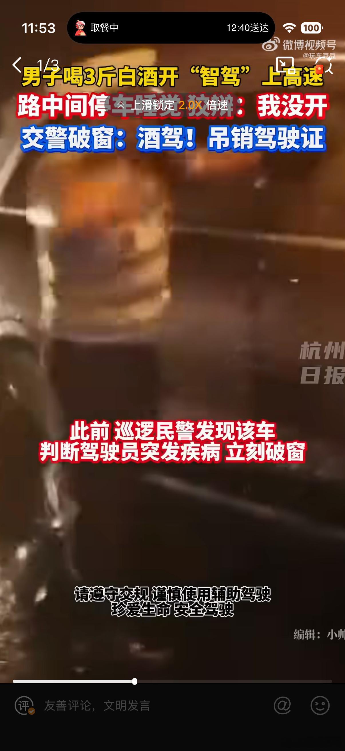 男子喝3斤白酒用智驾开车20公里辅助驾驶永远是辅助自己才是驾驶的第一责任人[吃瓜