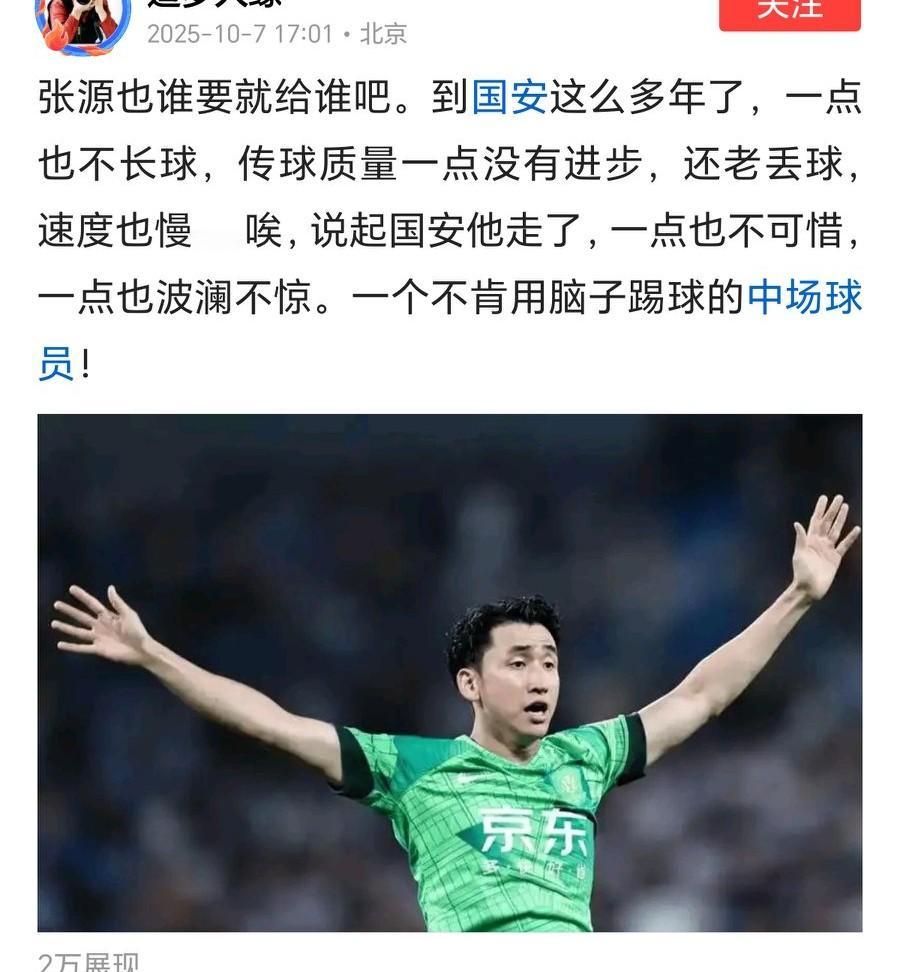国安球员张源流泪告别塞蒂恩,一些国安球迷又破防了,恨不得赶紧送走 据北京电视台天