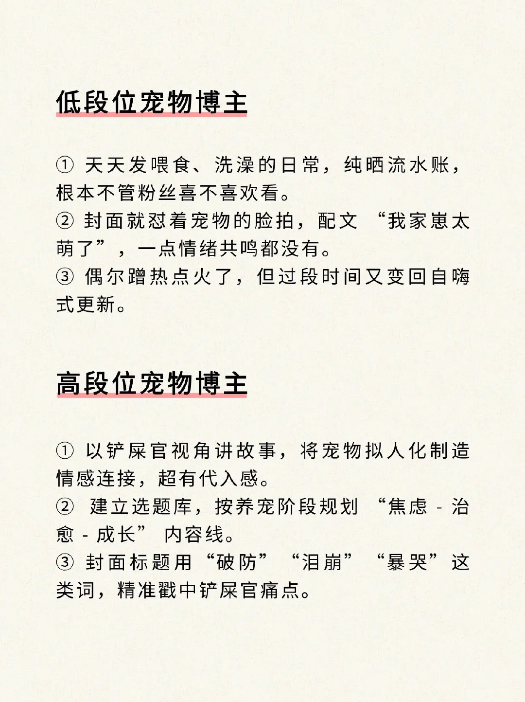 宠物博主避坑指南!低段位天天晒喂食洗澡流水账,高段位靠铲屎官视角讲故事+情绪钩子标题,难怪粉丝差这么多?你家毛孩子有哪些让你崩溃又治愈的瞬间?