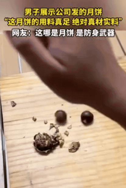 “解释不清了!”10月6日报道,广东一男子展示公司发的月饼,竟然一口气拍碎了核桃