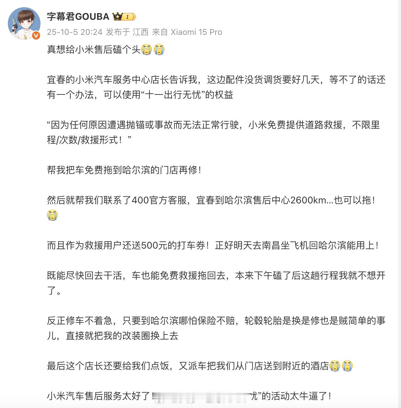 出行无忧也是一样,你真遇到事也真帮你解决,比如字幕君这个2600公里也帮你搞定,换其他品牌谁给你做?