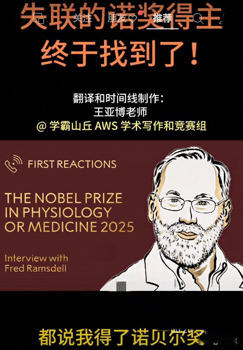你能想象吗 刚斩获2025诺贝尔生理学或医学奖的FredRamsdell