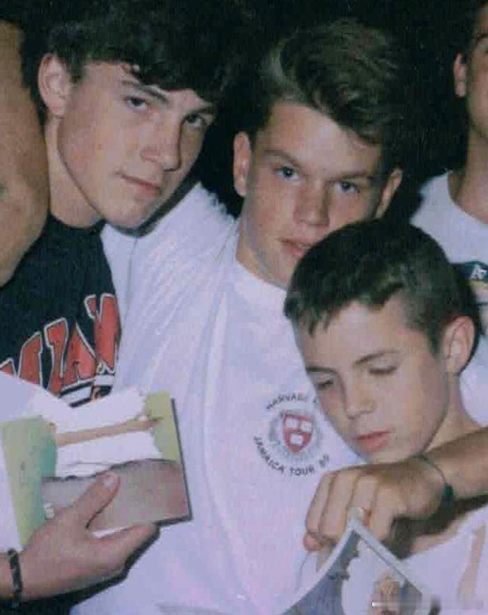 本·阿弗莱克、马特·达蒙和卡西·阿弗莱克20世纪80年代末在马特·达蒙生日派对上的合照