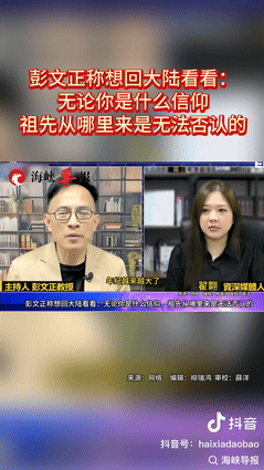 前绿媒主持人彭文正的态度发生转变,之前为“去中国化”,公开使用“古今台外”一词,没想到,他又声称想回大陆看看:无论你是什么信仰,祖先从哪里来是无法否认的! 彭文正把心里的想法说得明明白白,原本还以为他寥寥几句就带过去了,结果越说越认真,这话一出,让不少人觉得,他是真的把对故土的感情放在心上了。 彭文正的祖辈在广东生活过,这里藏着他家族的根,说不定他夜里睡不着的时候,就会想起老家的样子,想起祖先生活过的地方,这份牵挂才慢慢在心里扎了根。 这要是往回倒几年,彭文正可不是这样的,那时候他满脑子是“台独”的念头,还琢磨出不少让人摸不着头脑的词,无非是想借着这些说法,把台湾和大陆拆开来。 不过他为什么正视起两岸之间关系,没法得知,但有一点是肯定的,他总算认了祖、念了家,其实不管是年龄大念旧,还是别的什么,说到底,骨子里对故土的眷恋,不是说断就能断的。 就算曾经有过别的想法,这份情感早晚都会冒出来,彭文正也让大家明白,不管以前有过怎样的立场,祖先留下的根始终改变不了。 希望他真能有机会回到广东,走一走老家的路,看一看老家的景,圆了心里这个念想,毕竟亲眼看到的,和亲身感觉到的东西才是真的。 信息来源:海峡导报 2025年10月1日