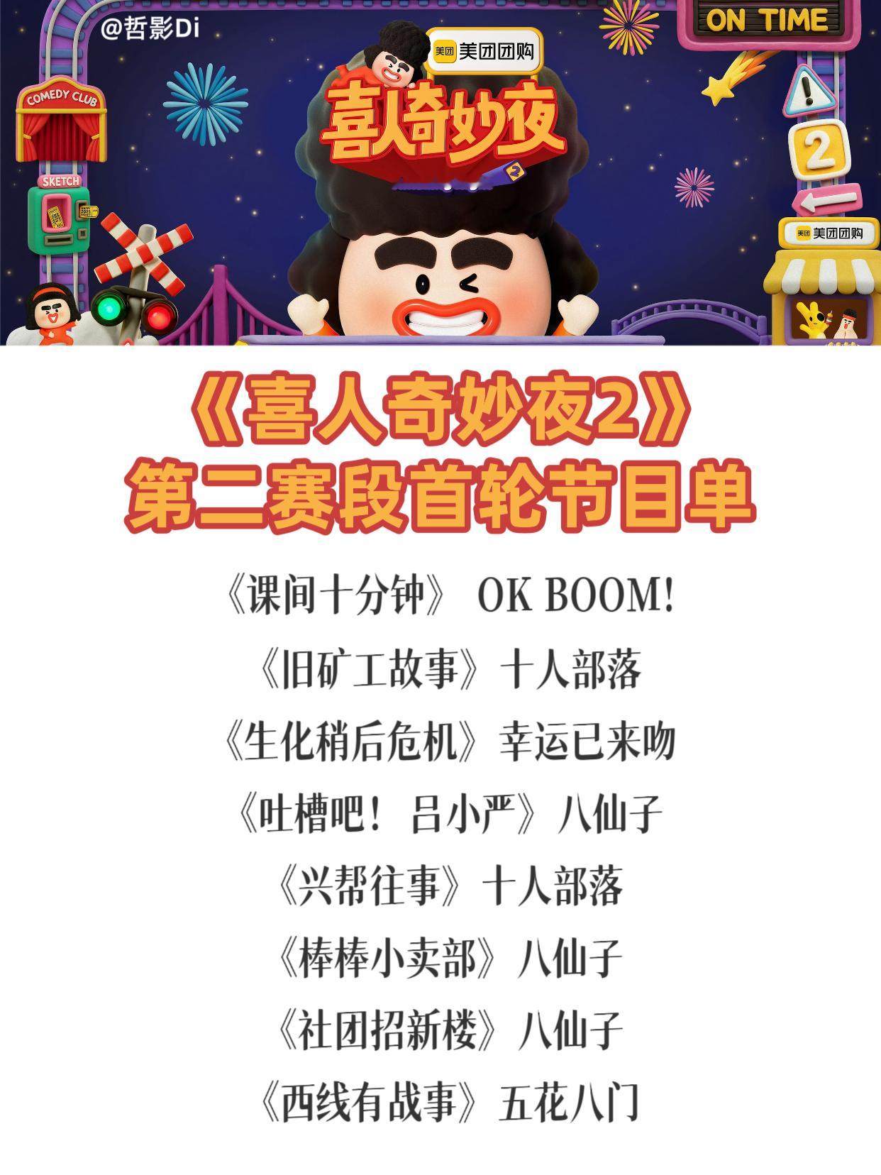 喜人奇妙夜2 《喜人奇妙夜2》第二赛段首轮节目单发布,预告很精彩,李逗逗pk小力士,思念成吉对阵外星从,期待周五[打call][打call]