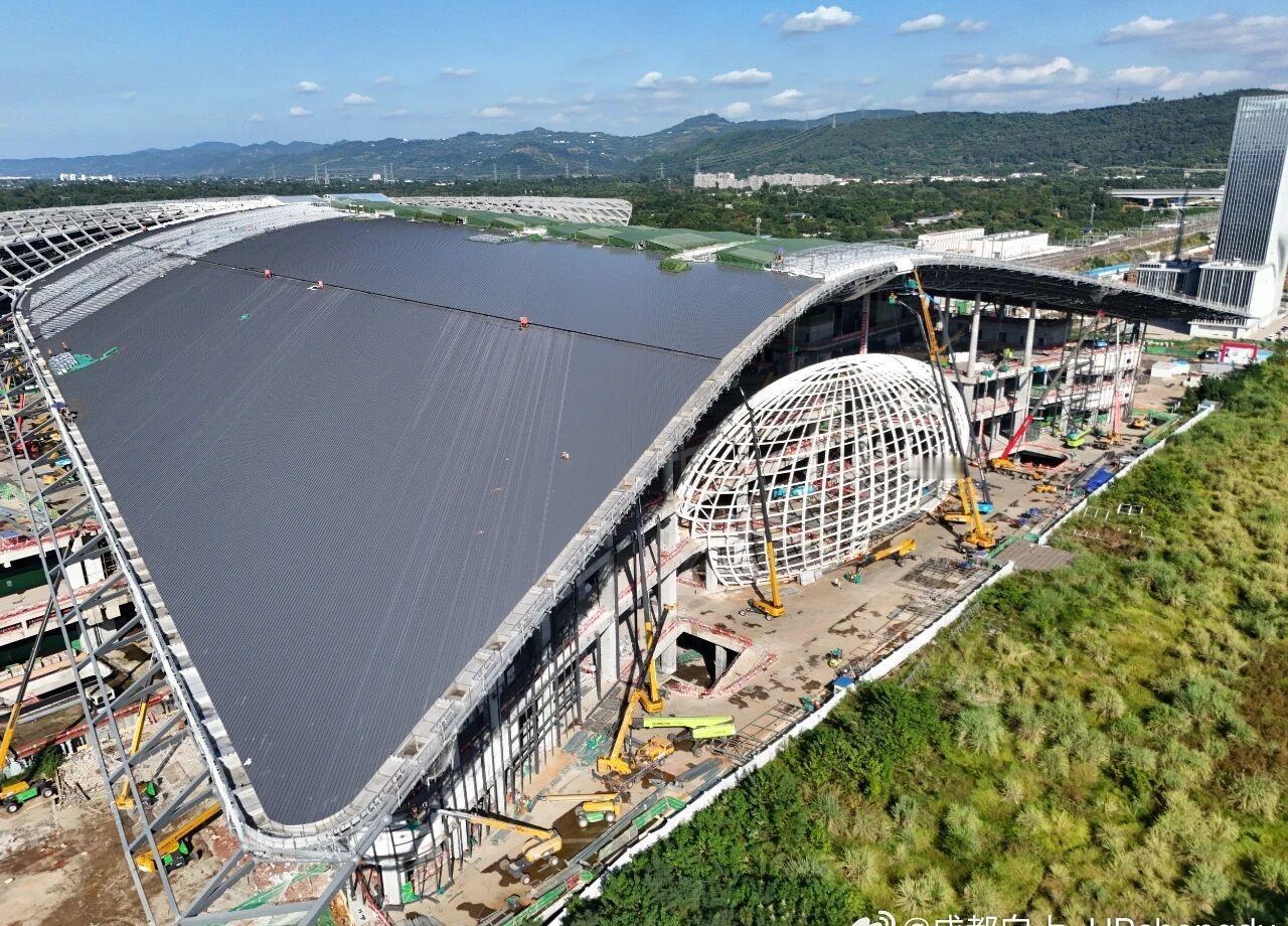 最新|天府站|正处于金属屋面装饰层(凤羽)施工、外幕墙施工、室内装修及机电安装全