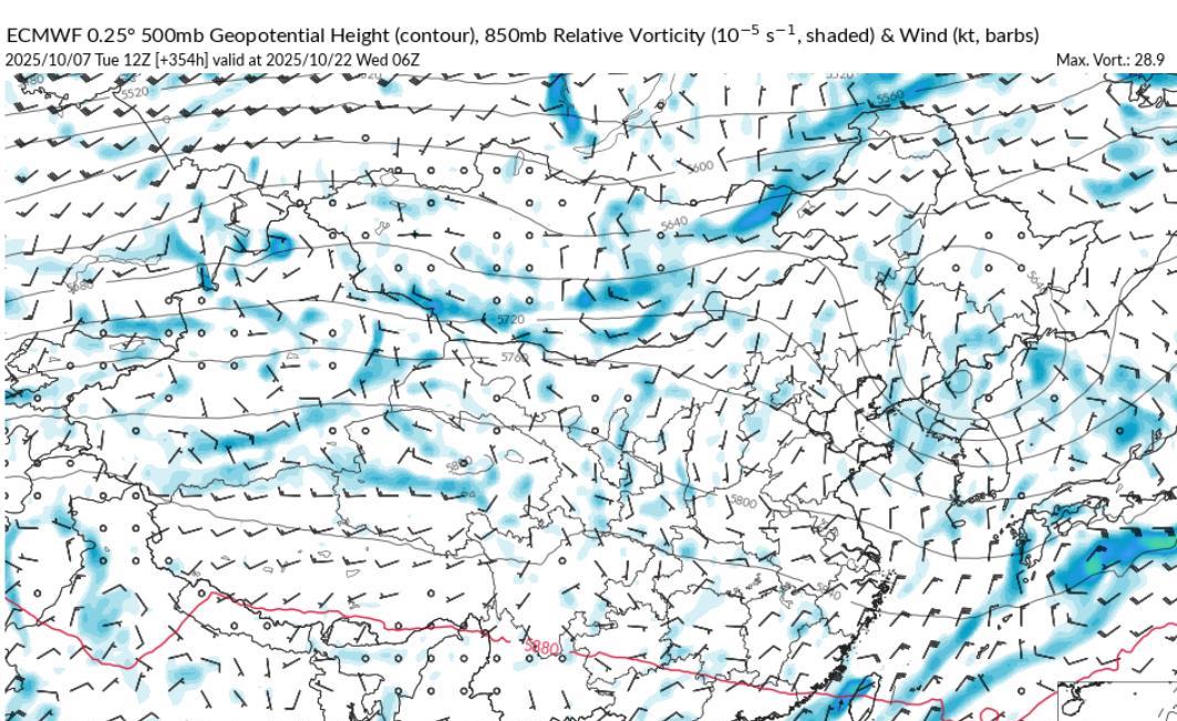 根据最新的数值预报来看,10月22日副热带高压主要影响的也是广东、广西一带。 从地面风场和气压场来看,数值预报已经连续几天都认为10月下旬的冷空气。但是 10月22日南方的冷空气相比预报的 20号,冷空气已经有了一个明显的减弱。1018 百帕等压线位于广东北部一带,也就是说冷空气已经进入了一个尾声。 从 700 百帕流场来看,10月22日南方大部基本上没有暖湿气流进入,从850 百帕来看,以高空偏北气流为主,缺乏外来水汽输送通道。 云量预报来看,10月22日南方大部云量都比较少,天气比较晴好。 虽然说冷空气渐入尾声,但是在晴空辐射影响下,10月22日南方大部早上都比较清凉。 22 日早上, 湖南、江西、广西一带预报的温度都在15~17 度左右。就连温度稍微高一点的广东,预报的也只是19~21 度左右。 虽然说早上比较清凉,但是白天太阳出来之后,温度还会继续上升,22日下午江西南部、广东一带温度或在27~29 度左右,可能在户外阳光下还是会略感一些炎热,但是这个温度,那还是舒服多了。 …数值仅供参考…
