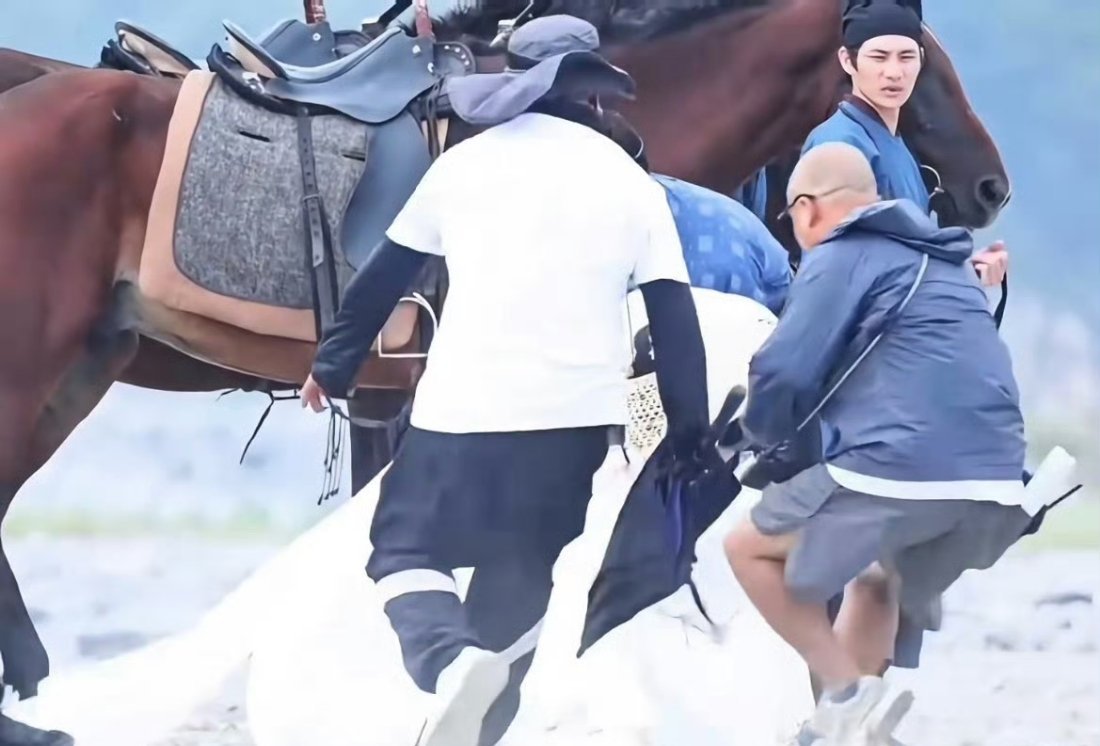 孟子义拍戏摔了[泪奔]满地的石头和沙粒看着就痛拽到脖子摔倒地上我都感觉幻痛了