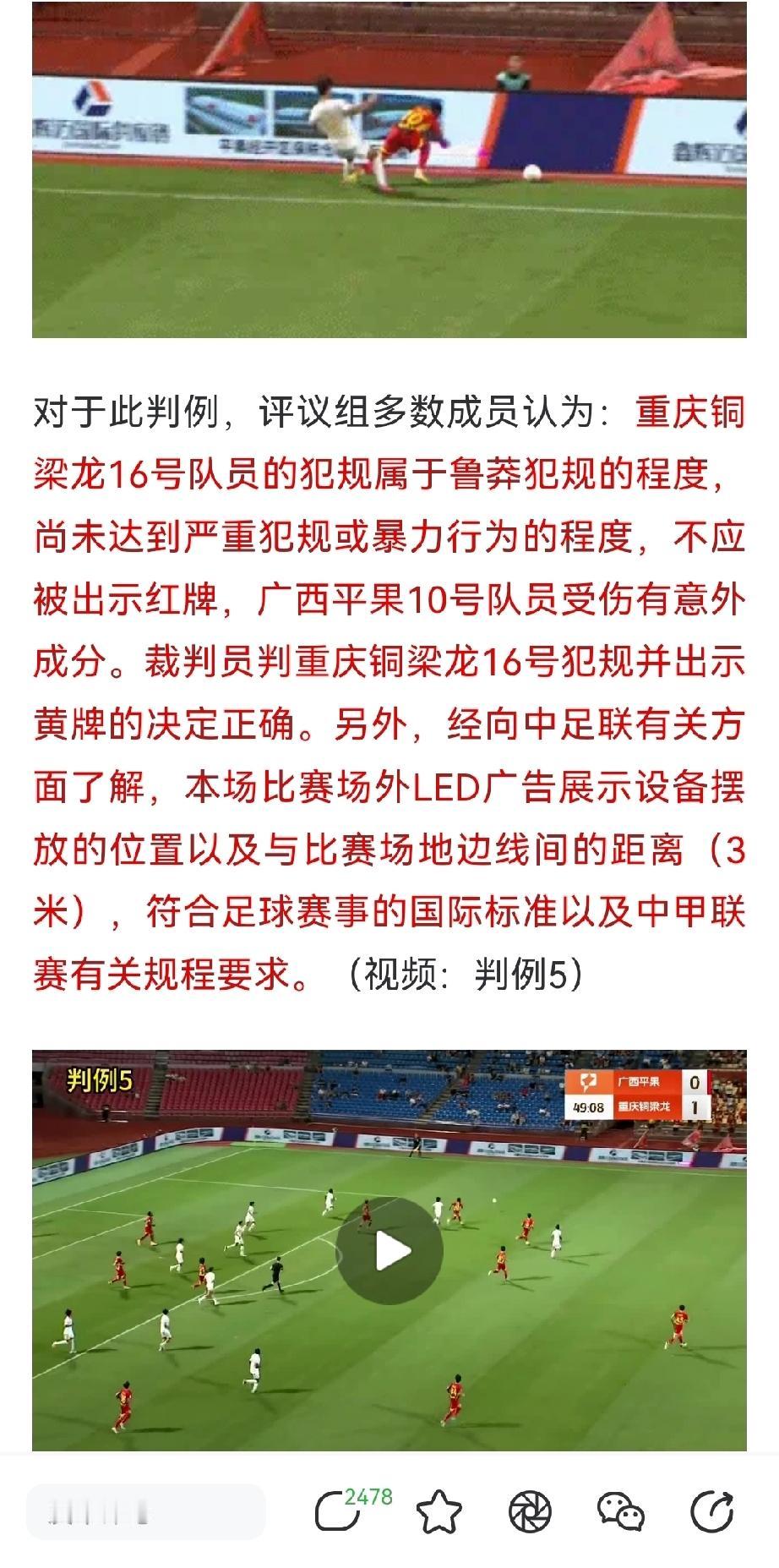 足协对重庆球员张志雄的评议出来了,鲁莽犯规+意外成分,且广告牌位置合规。 其实竞技体育受伤都是意外,同样的动作重复100遍,不见得都会伤,很多时候都是赶巧了。 主要原因还是广告牌,如果是一片空旷草地也没事,广告牌离场地太近。 不过这也不能洗清张志雄这个动作坏的嫌疑。 这个球奔着边线去的,你根本就拿不到球权的情况下,你非要冲上去背后给人家来一下,最后还勾了一脚…关键事后不是上去看下对方伤势,而是双手一抬毫无波澜的表示无辜,这是一个职业球员做出来的事情?