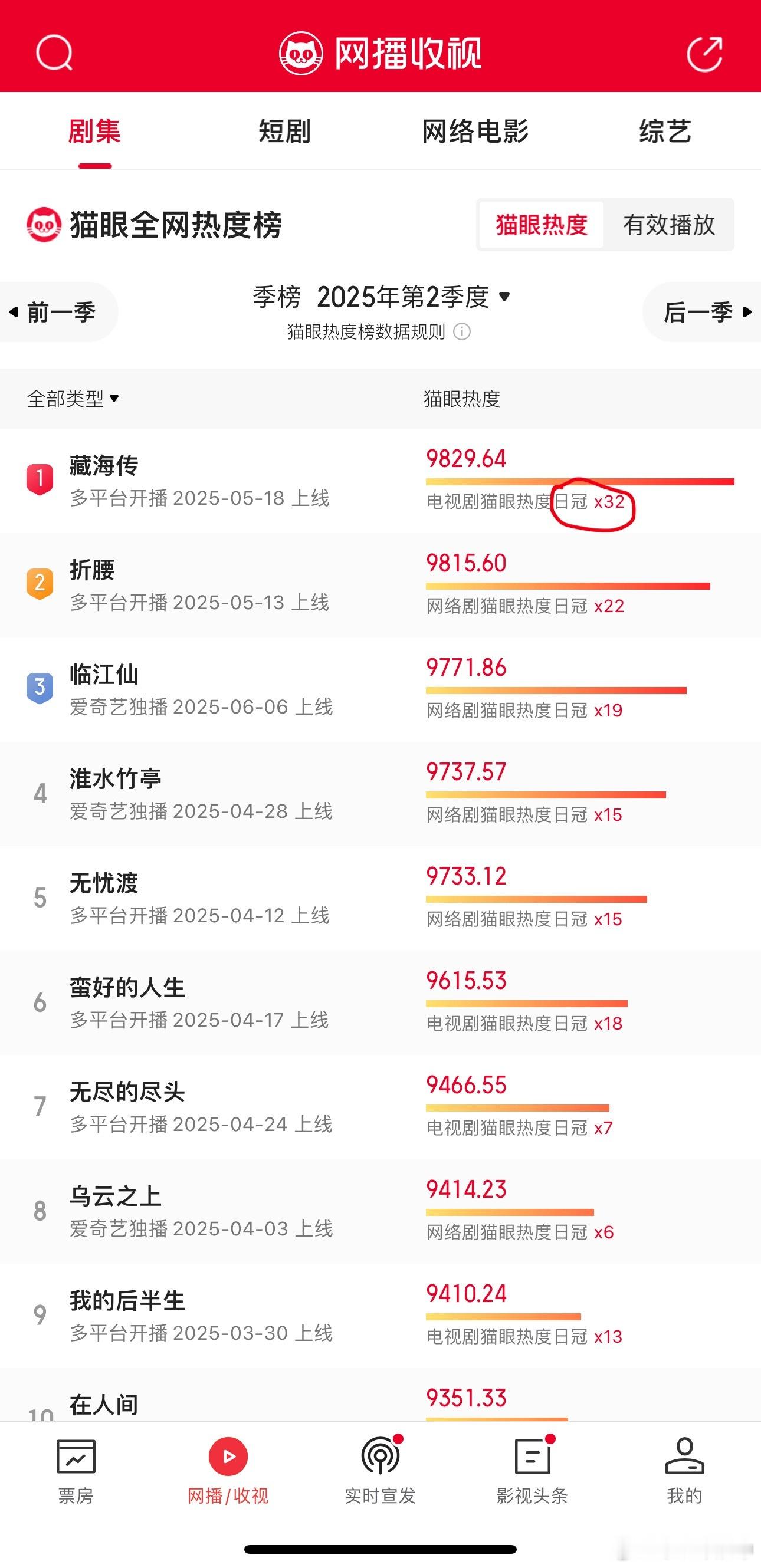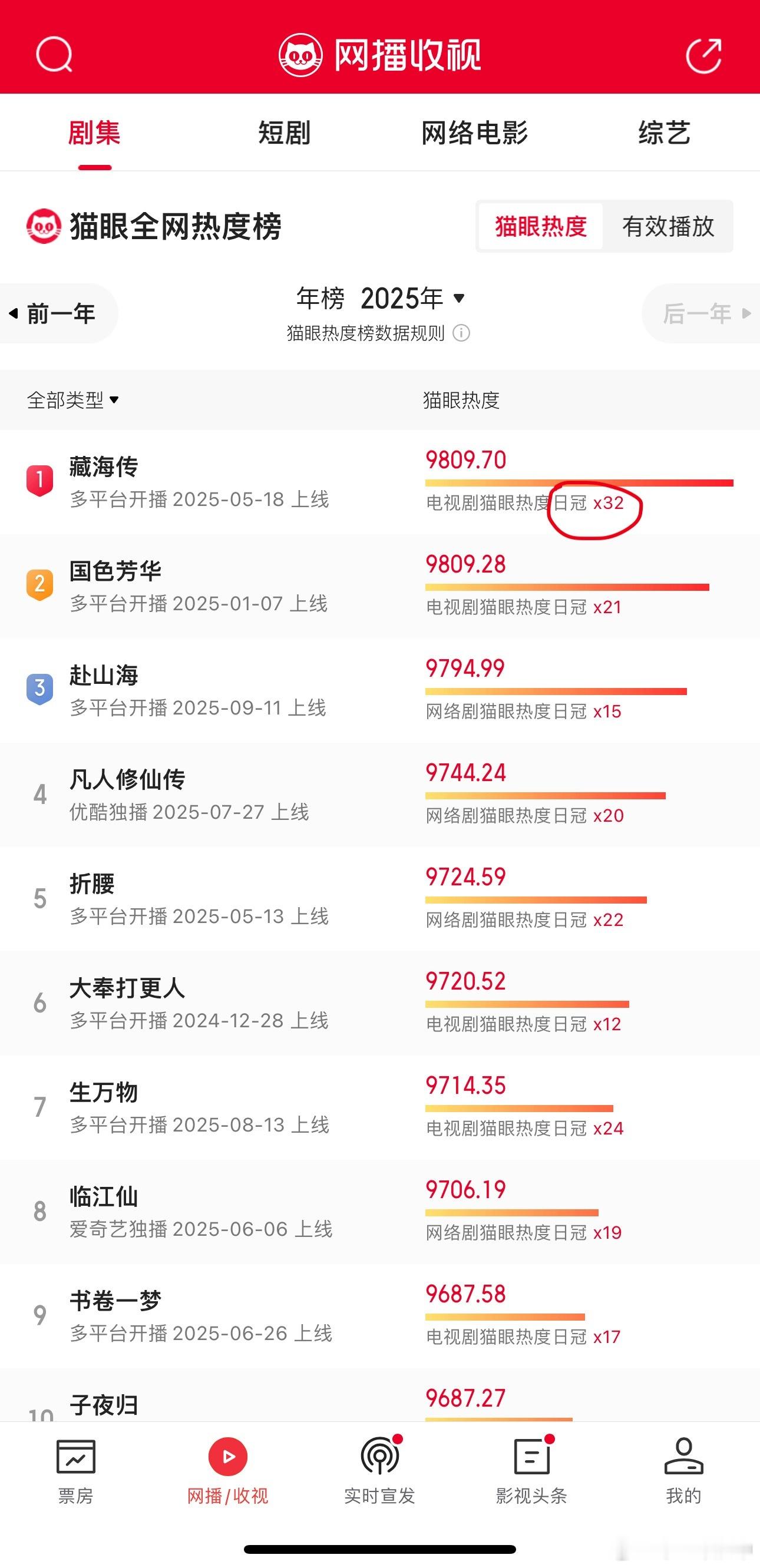 ·云合/灯塔/酷云/猫眼年榜第一☝️,超强的长尾!