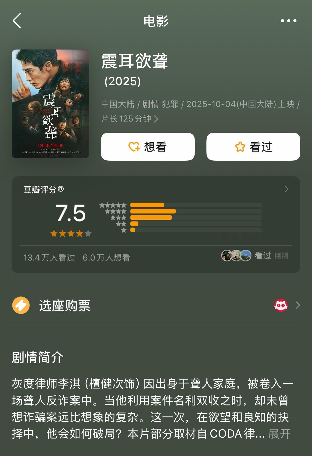 檀健次震耳欲聋13万➕人次评分,好电影大家都在看[锦鲤附体]